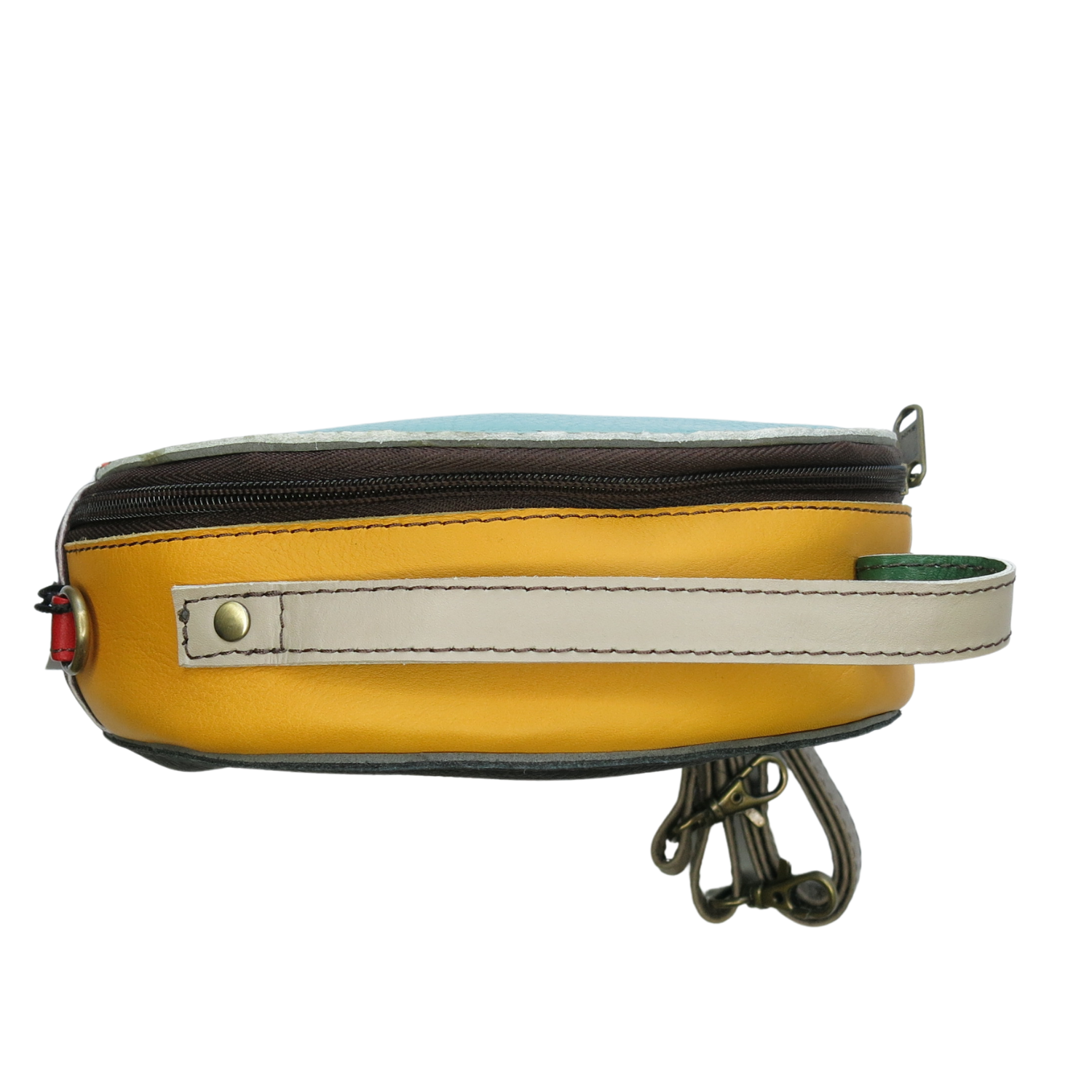 Ta dwustronna, oryginalna torebka w kształcie koła, jest absolutnie unikalna. Bez względu na sposób noszenia, czy to w dłoni, czy na długim pasku, z pewnością przyciągnie uwagę wszystkich wokół Ciebie. Nigdzie nie znajdziesz drugiej takiej samej!