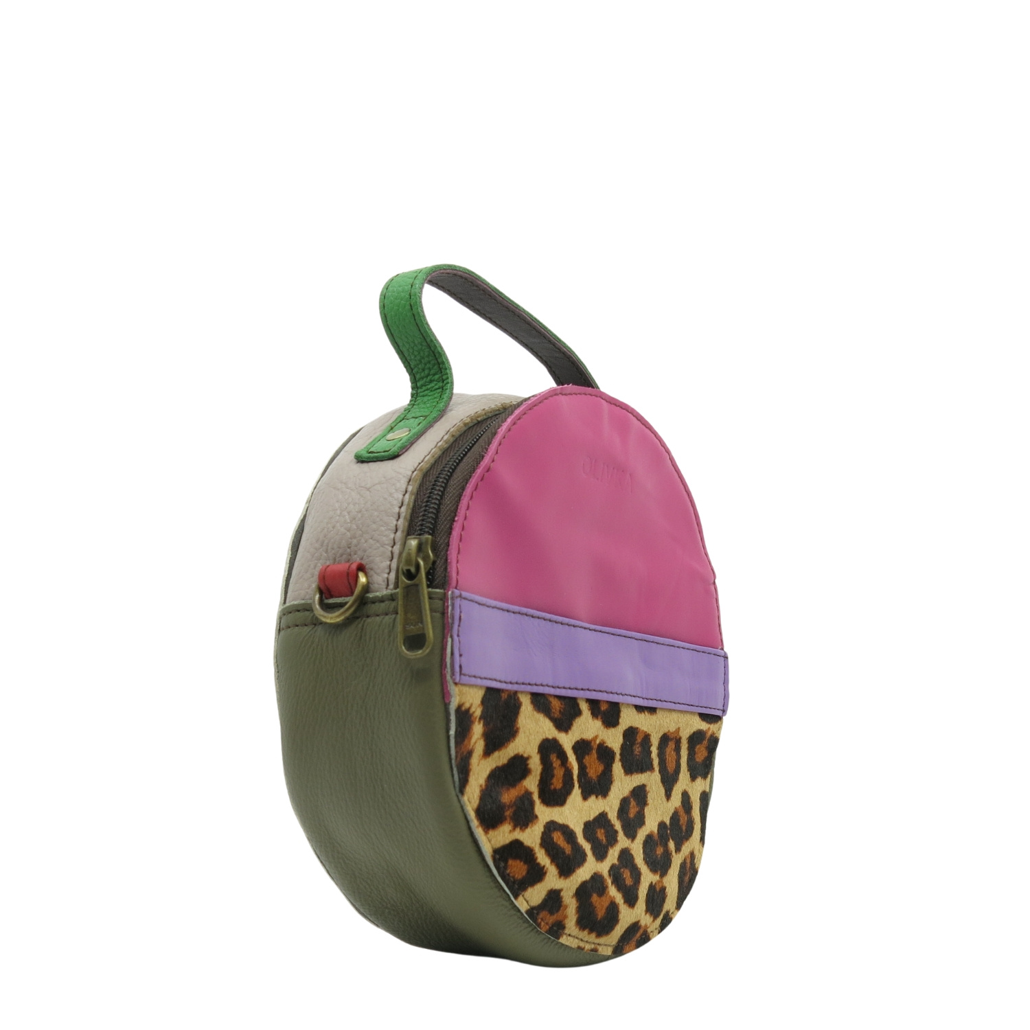 Ta dwustronna, oryginalna torebka w kształcie koła, jest absolutnie unikalna. Bez względu na sposób noszenia, czy to w dłoni, czy na długim pasku, z pewnością przyciągnie uwagę wszystkich wokół Ciebie. Nigdzie nie znajdziesz drugiej takiej samej!
