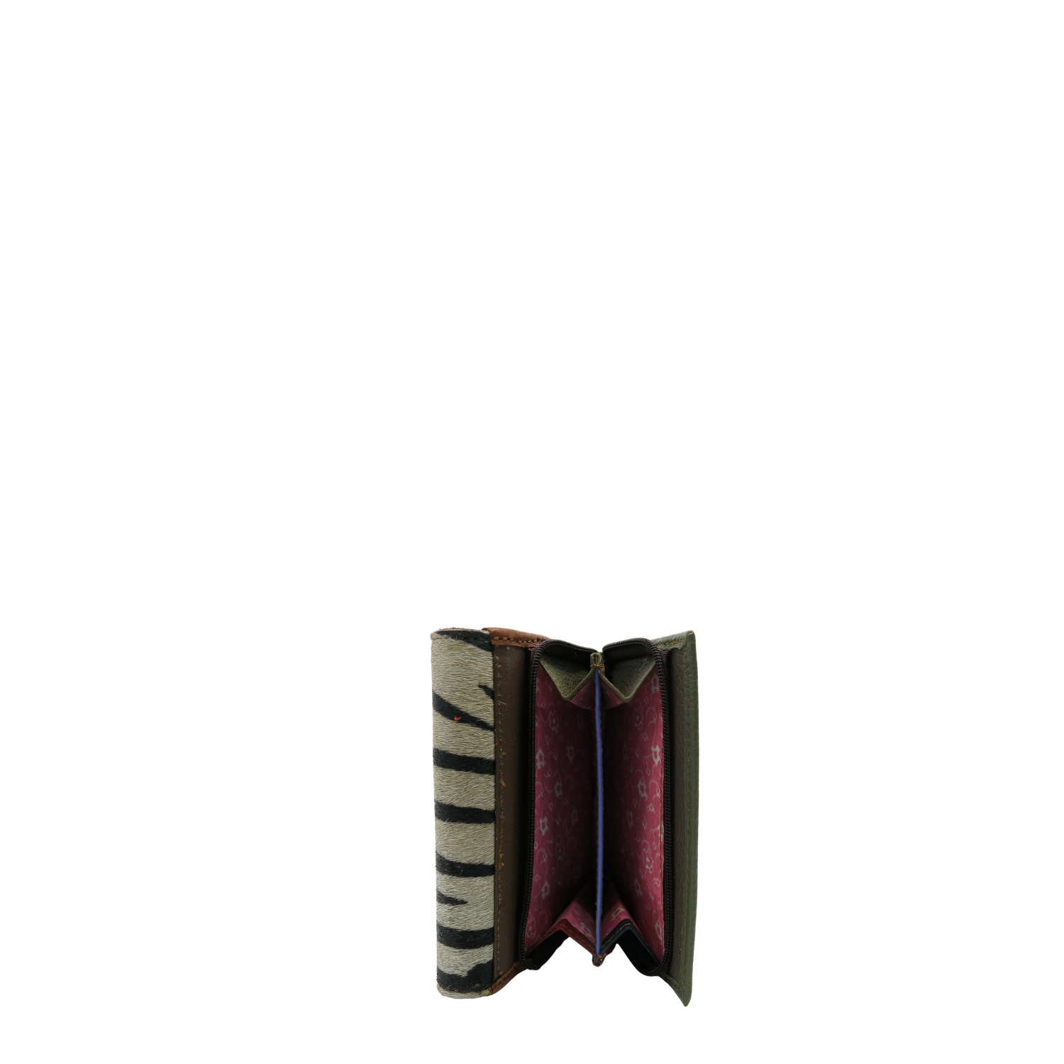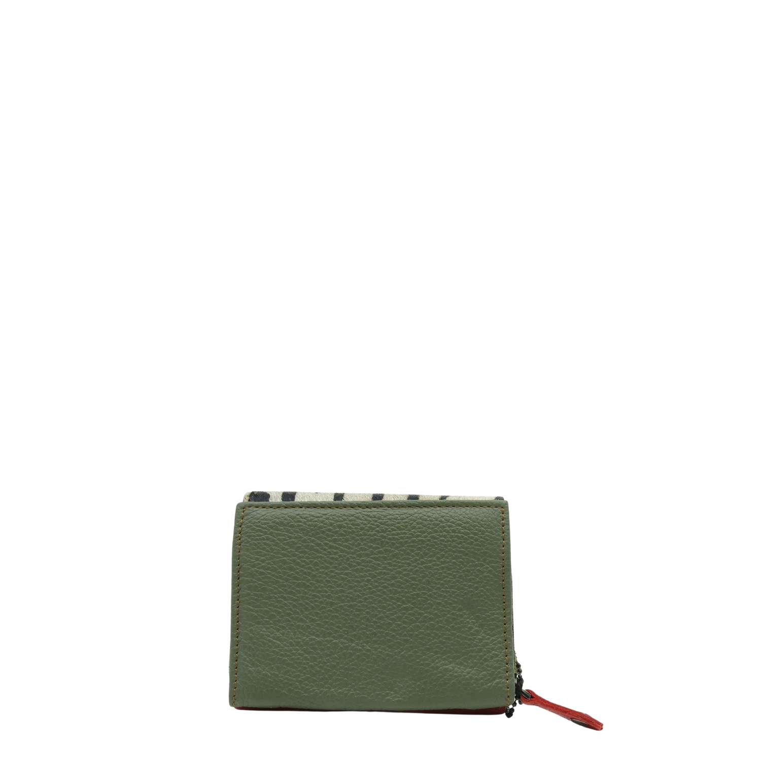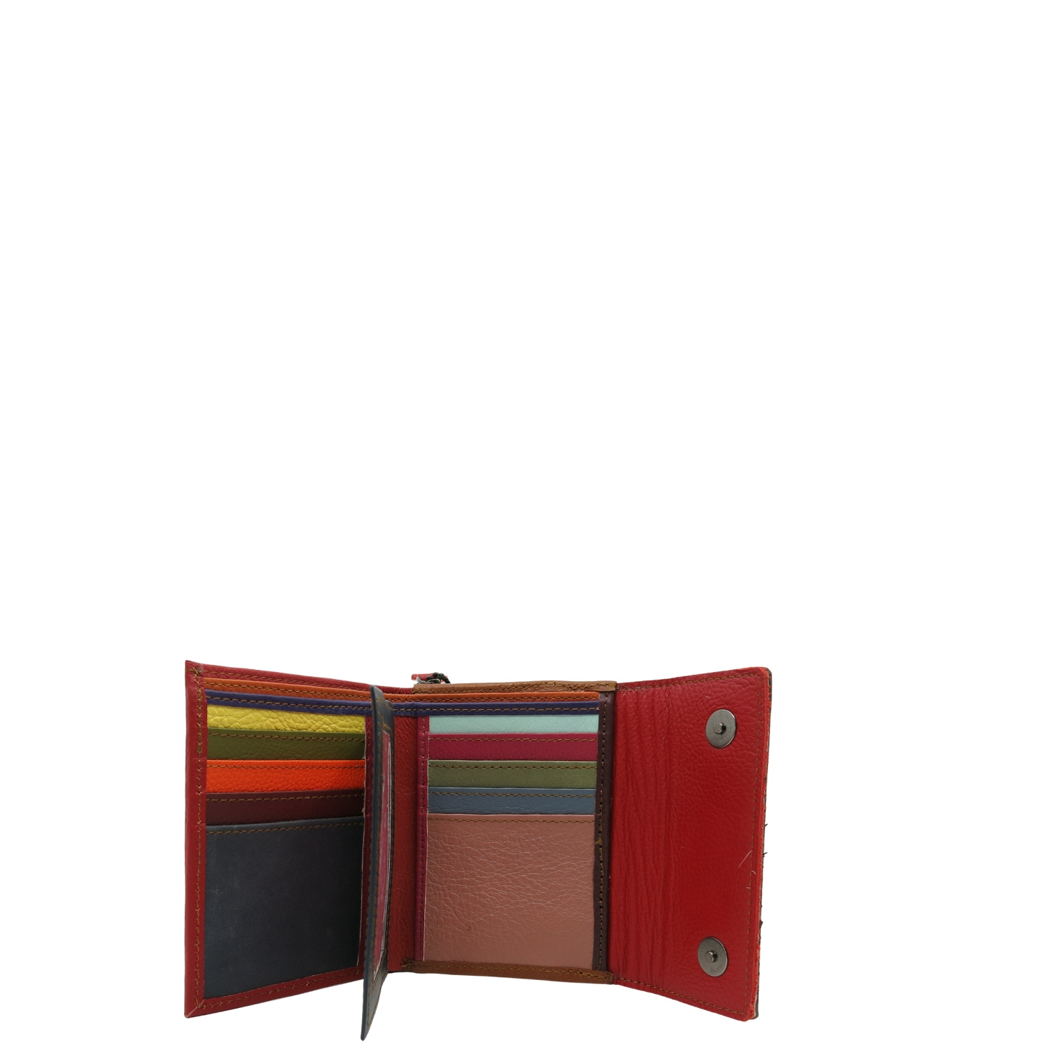 Średniej wielkości portfel wykonany ze skrawków skóry naturalnej. Jego unikalne połączenie kolorystyczne nadaje mu niepowtarzalny charakter, czyniąc go doskonałym dodatkiem. Spełni oczekiwania nawet najbardziej wymagających kobiet.