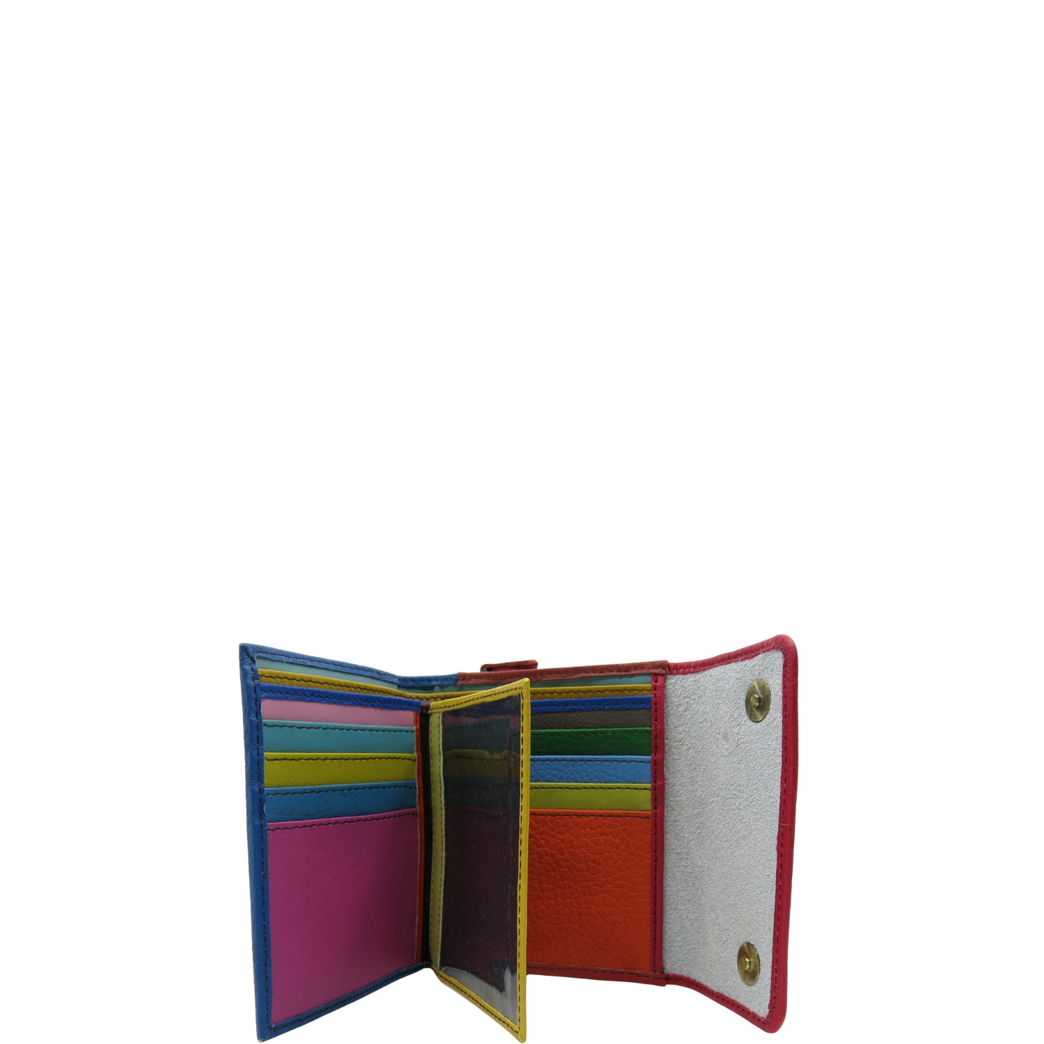 Średniej wielkości portfel wykonany ze skrawków skóry naturalnej. Jego unikalne połączenie kolorystyczne nadaje mu niepowtarzalny charakter, czyniąc go doskonałym dodatkiem. Spełni oczekiwania nawet najbardziej wymagających kobiet.