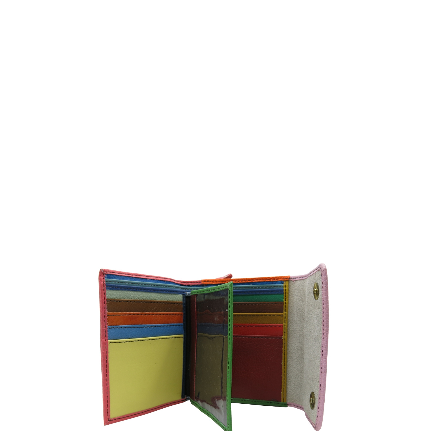 Średniej wielkości portfel wykonany ze skrawków skóry naturalnej. Jego unikalne połączenie kolorystyczne nadaje mu niepowtarzalny charakter, czyniąc go doskonałym dodatkiem. Spełni oczekiwania nawet najbardziej wymagających kobiet.