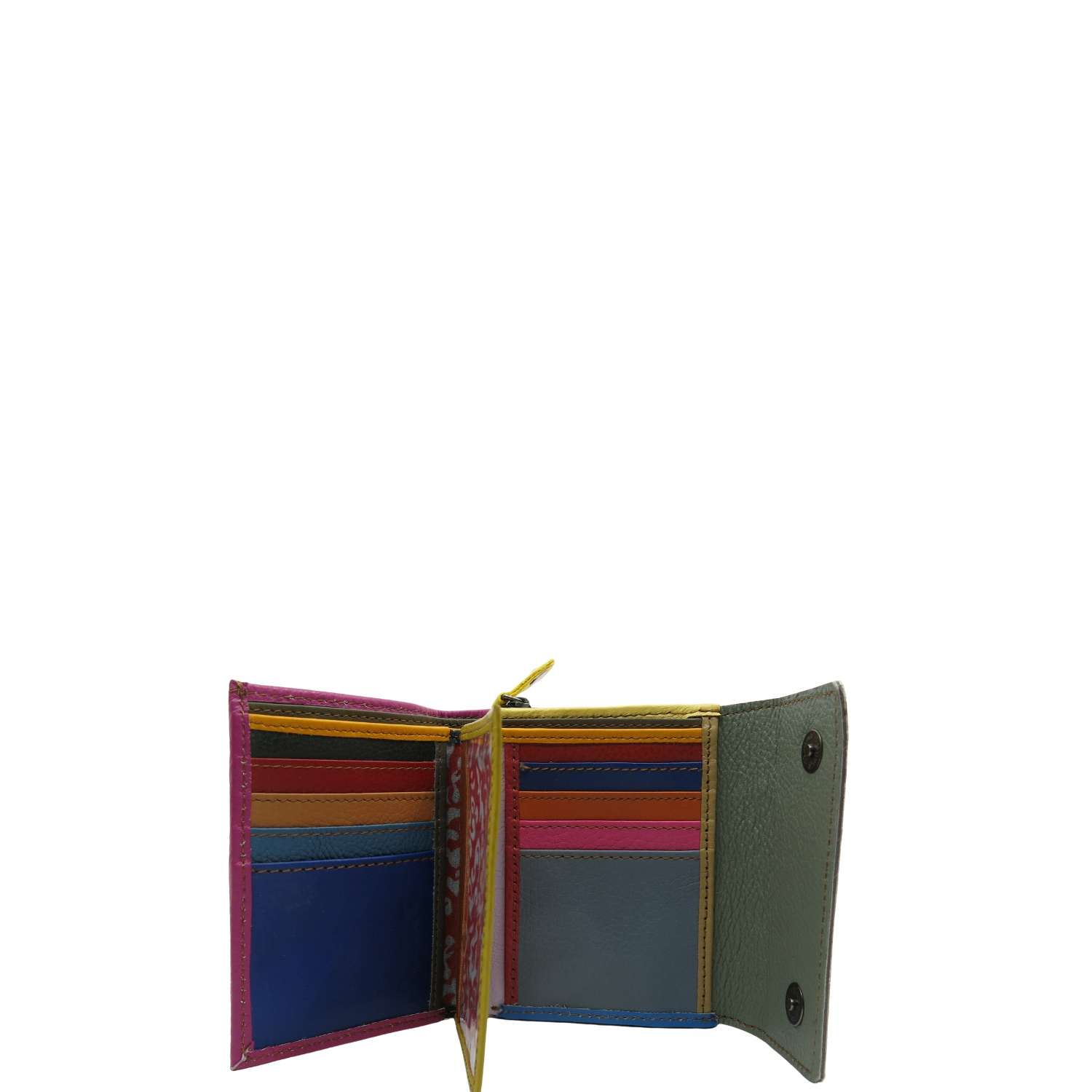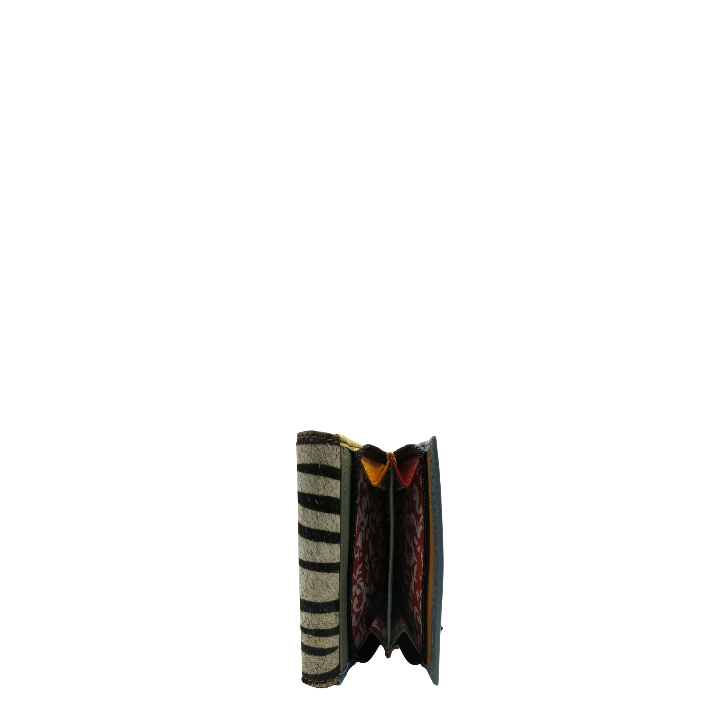 Średniej wielkości portfel wykonany ze skrawków skóry naturalnej. Jego unikalne połączenie kolorystyczne nadaje mu niepowtarzalny charakter, czyniąc go doskonałym dodatkiem. Spełni oczekiwania nawet najbardziej wymagających kobiet.