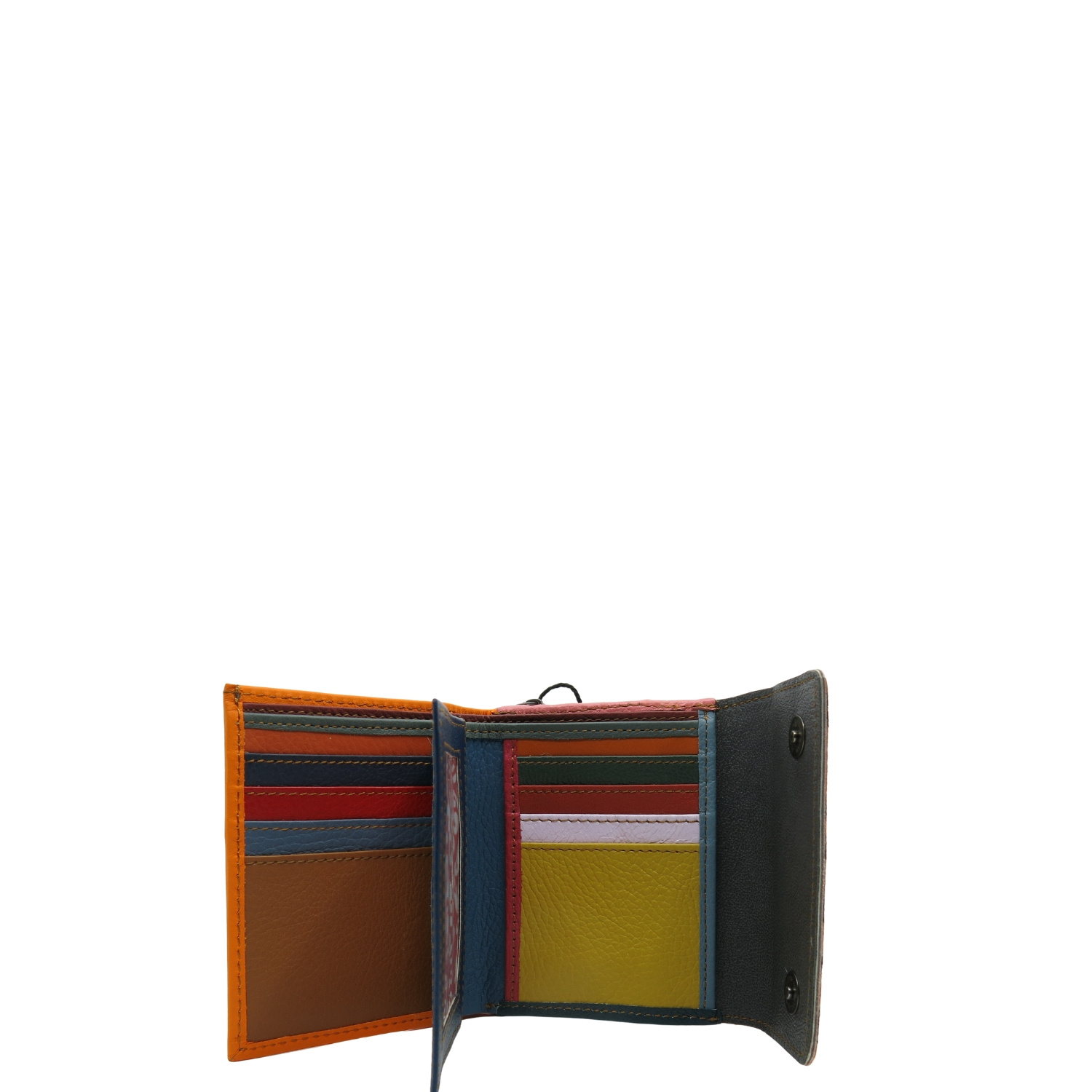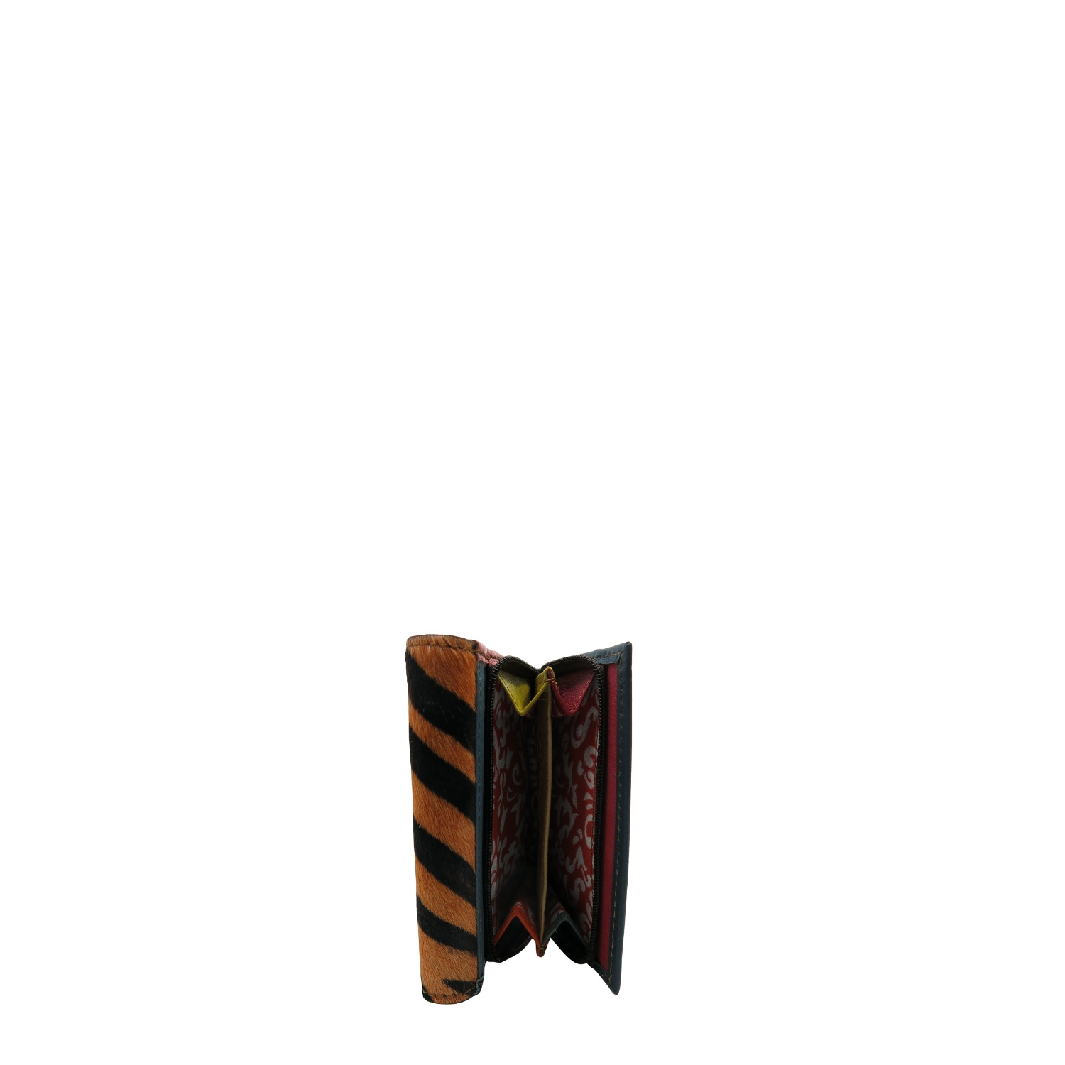 Średniej wielkości portfel wykonany ze skrawków skóry naturalnej. Jego unikalne połączenie kolorystyczne nadaje mu niepowtarzalny charakter, czyniąc go doskonałym dodatkiem. Spełni oczekiwania nawet najbardziej wymagających kobiet.