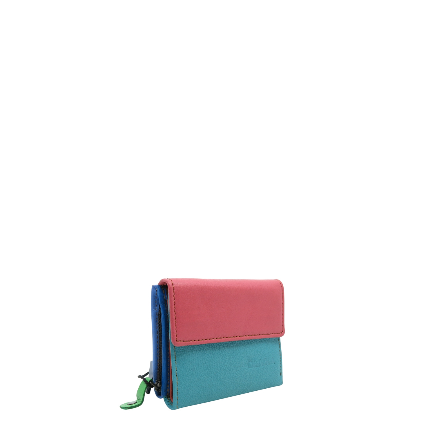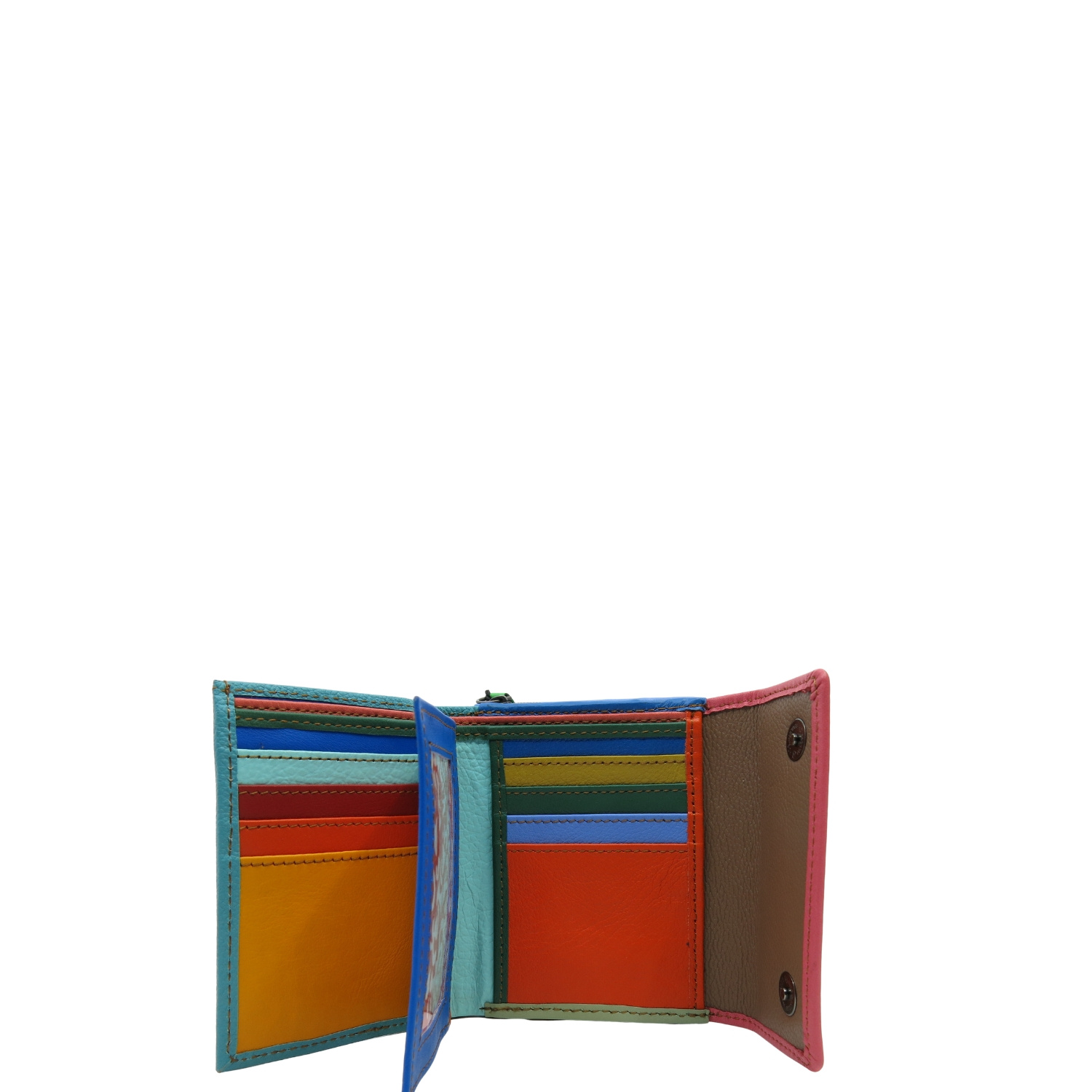 Średniej wielkości portfel wykonany ze skrawków skóry naturalnej. Jego unikalne połączenie kolorystyczne nadaje mu niepowtarzalny charakter, czyniąc go doskonałym dodatkiem. Spełni oczekiwania nawet najbardziej wymagających kobiet.