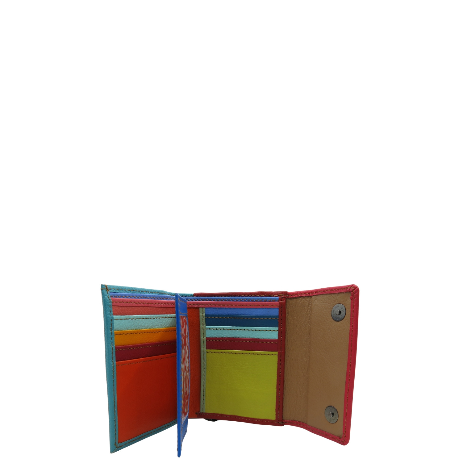 Średniej wielkości portfel wykonany ze skrawków skóry naturalnej. Jego unikalne połączenie kolorystyczne nadaje mu niepowtarzalny charakter, czyniąc go doskonałym dodatkiem. Spełni oczekiwania nawet najbardziej wymagających kobiet.