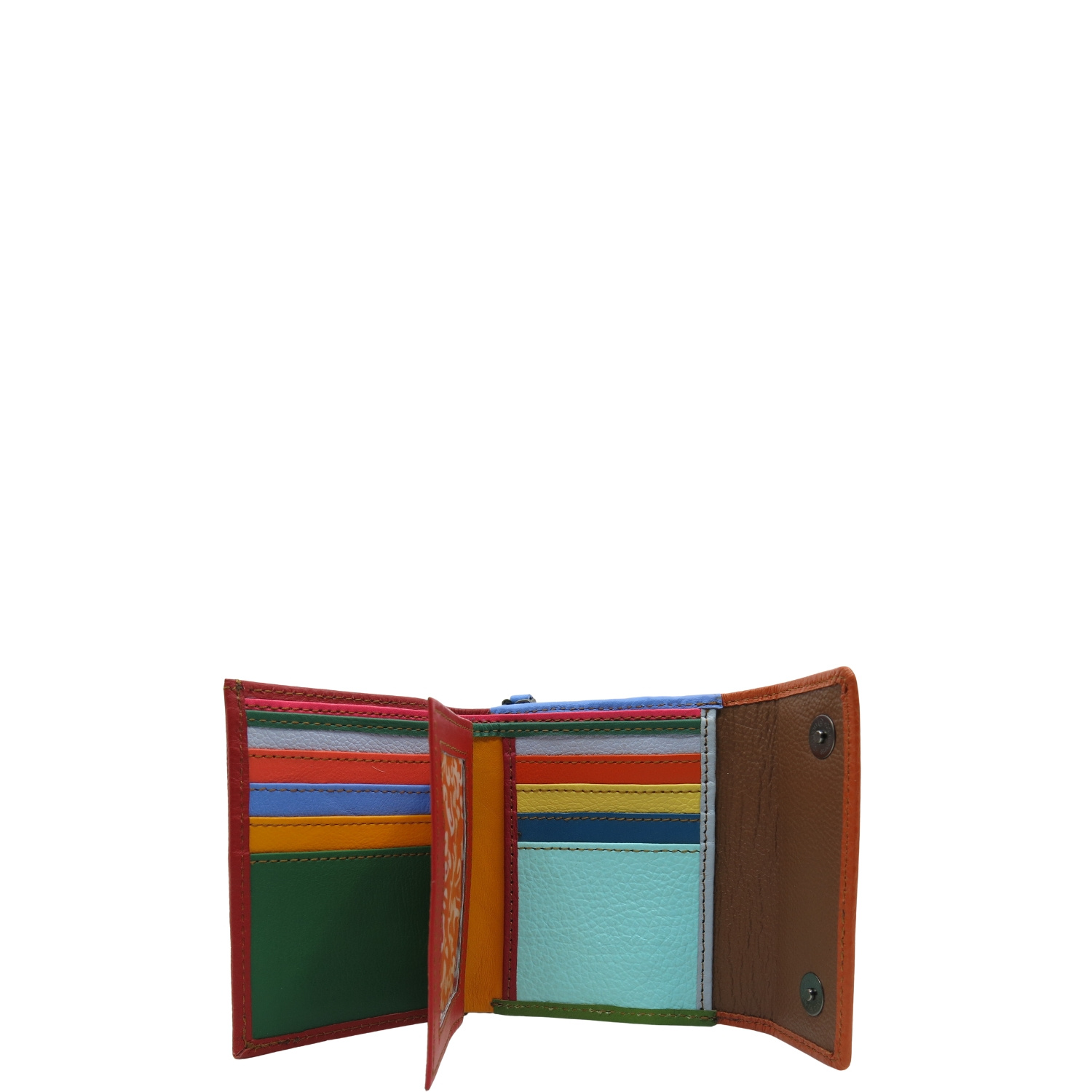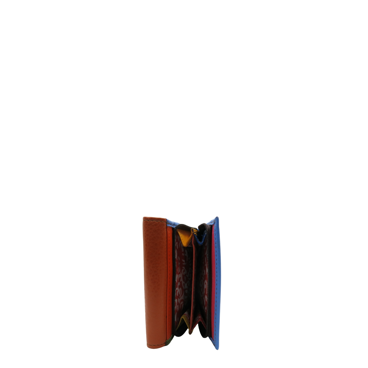 Średniej wielkości portfel wykonany ze skrawków skóry naturalnej. Jego unikalne połączenie kolorystyczne nadaje mu niepowtarzalny charakter, czyniąc go doskonałym dodatkiem. Spełni oczekiwania nawet najbardziej wymagających kobiet.