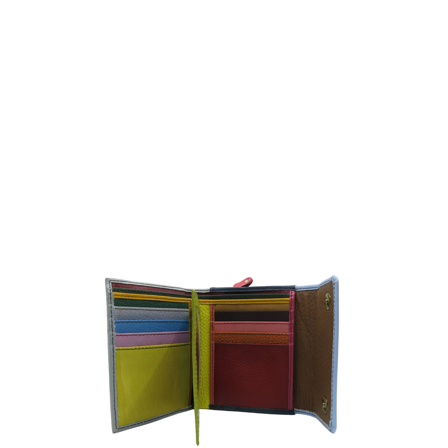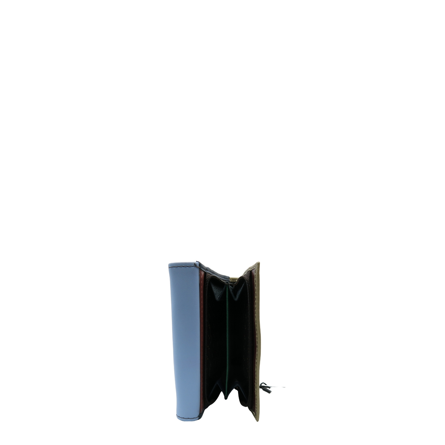 Średniej wielkości portfel wykonany ze skrawków skóry naturalnej. Jego unikalne połączenie kolorystyczne nadaje mu niepowtarzalny charakter, czyniąc go doskonałym dodatkiem. Spełni oczekiwania nawet najbardziej wymagających kobiet.