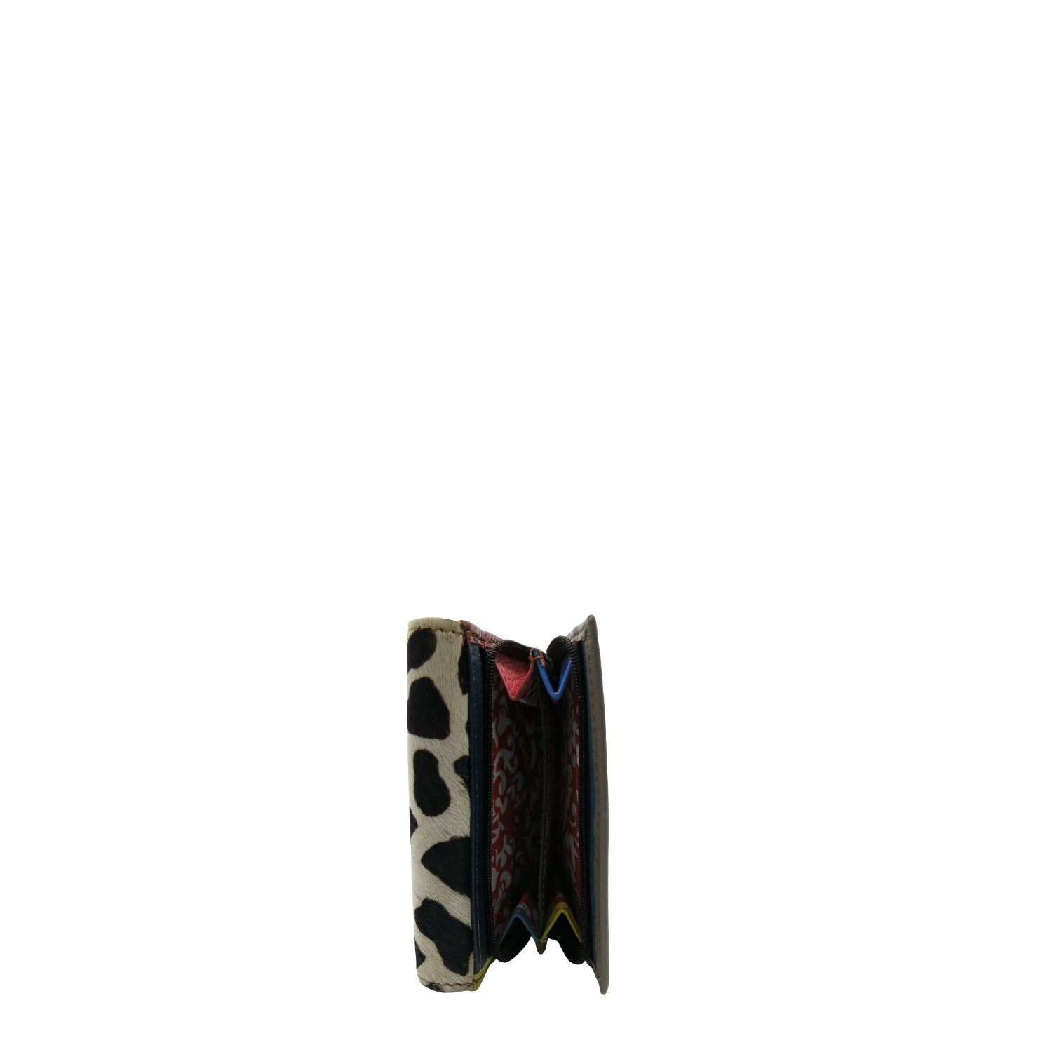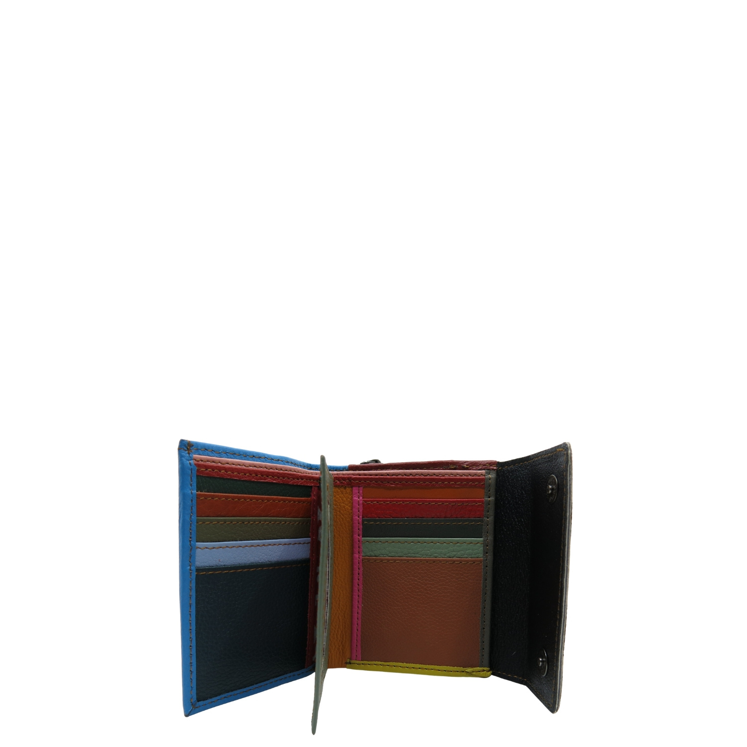 Średniej wielkości portfel wykonany ze skrawków skóry naturalnej. Jego unikalne połączenie kolorystyczne nadaje mu niepowtarzalny charakter, czyniąc go doskonałym dodatkiem. Spełni oczekiwania nawet najbardziej wymagających kobiet.