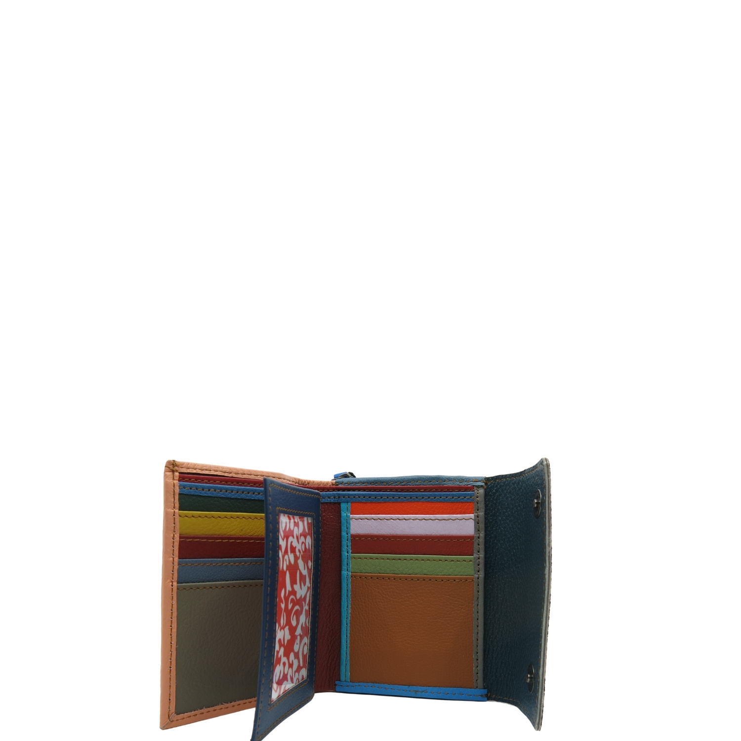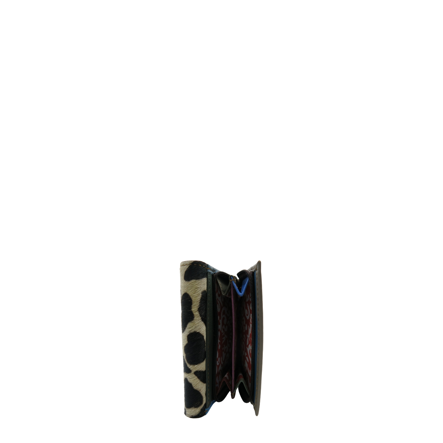 Średniej wielkości portfel wykonany ze skrawków skóry naturalnej. Jego unikalne połączenie kolorystyczne nadaje mu niepowtarzalny charakter, czyniąc go doskonałym dodatkiem. Spełni oczekiwania nawet najbardziej wymagających kobiet.