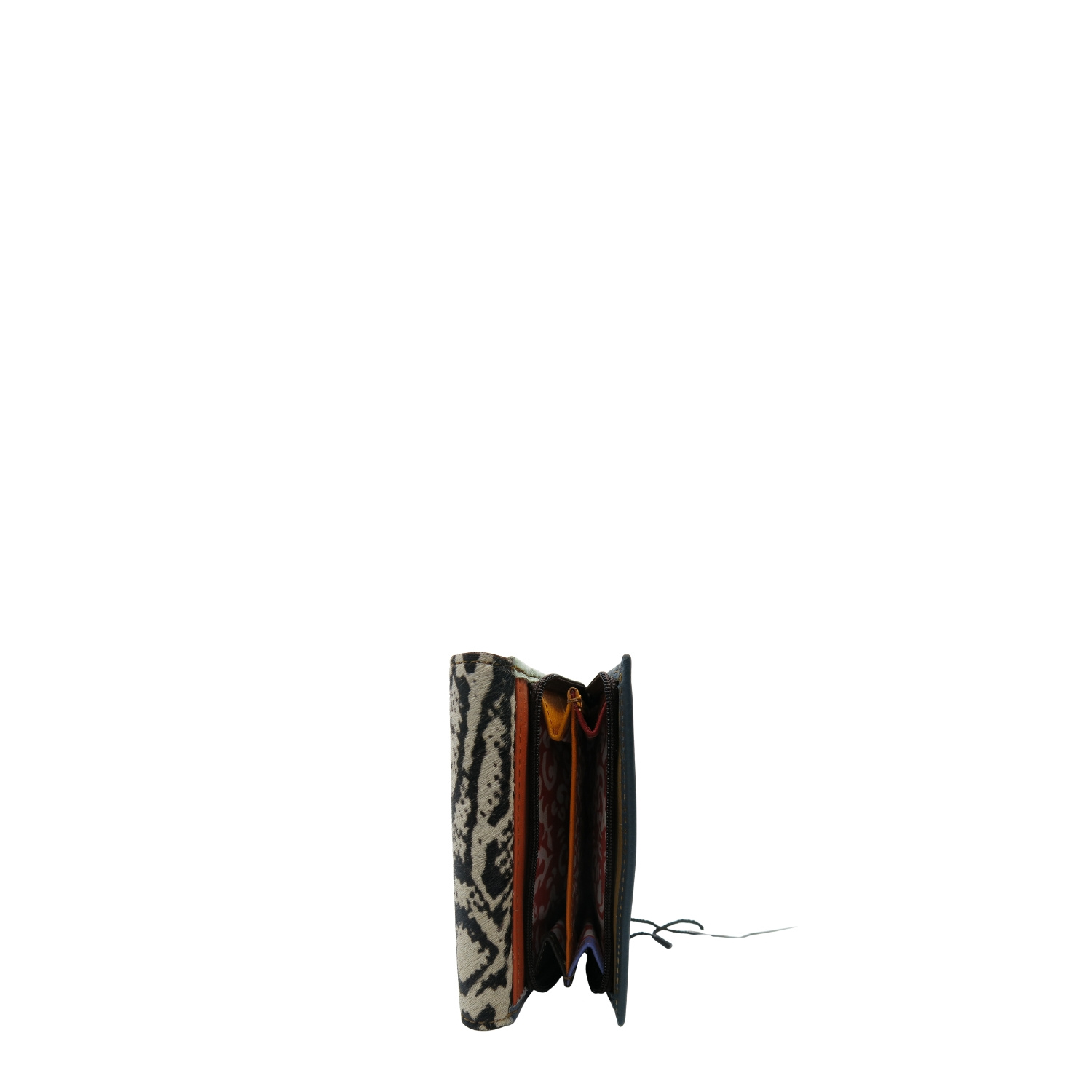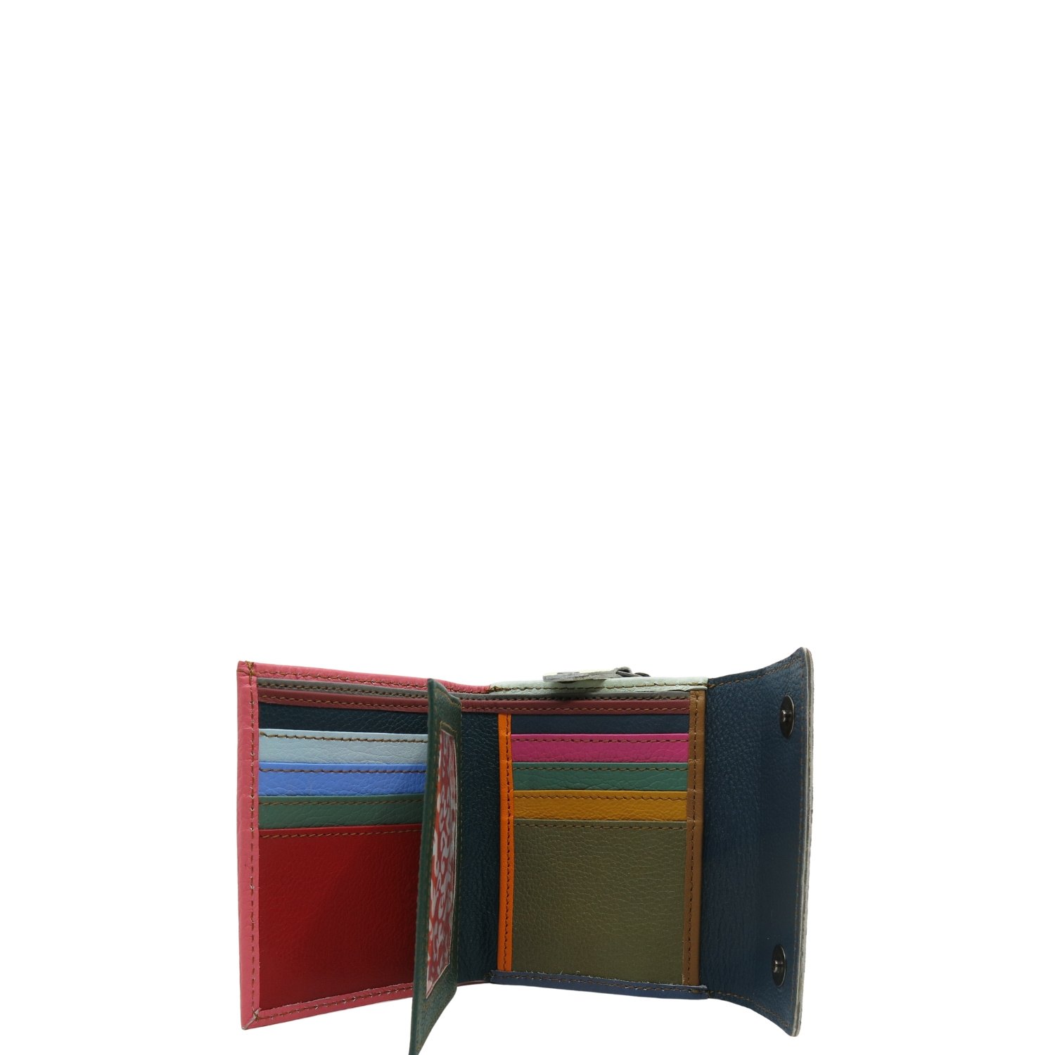 Średniej wielkości portfel wykonany ze skrawków skóry naturalnej. Jego unikalne połączenie kolorystyczne nadaje mu niepowtarzalny charakter, czyniąc go doskonałym dodatkiem. Spełni oczekiwania nawet najbardziej wymagających kobiet.