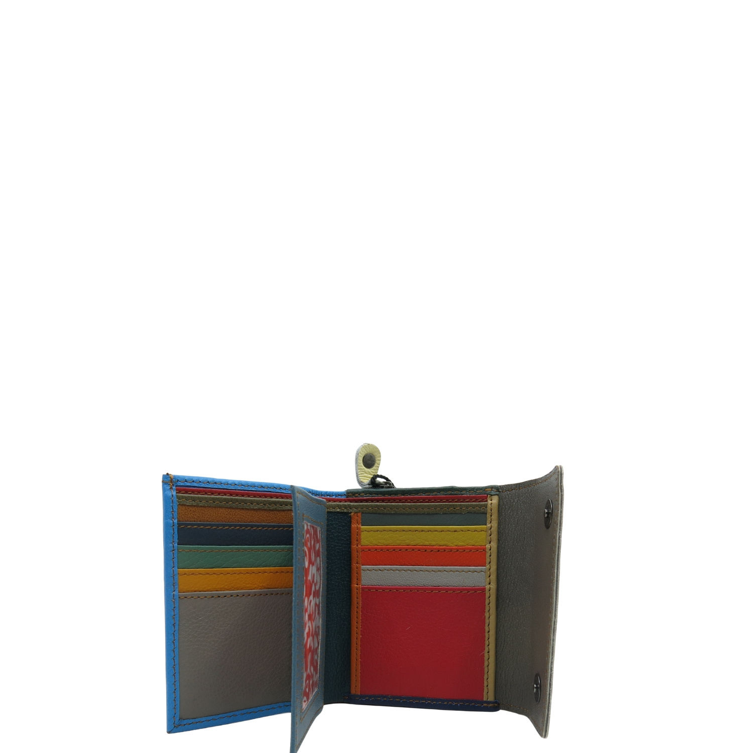 Średniej wielkości portfel wykonany ze skrawków skóry naturalnej. Jego unikalne połączenie kolorystyczne nadaje mu niepowtarzalny charakter, czyniąc go doskonałym dodatkiem. Spełni oczekiwania nawet najbardziej wymagających kobiet.