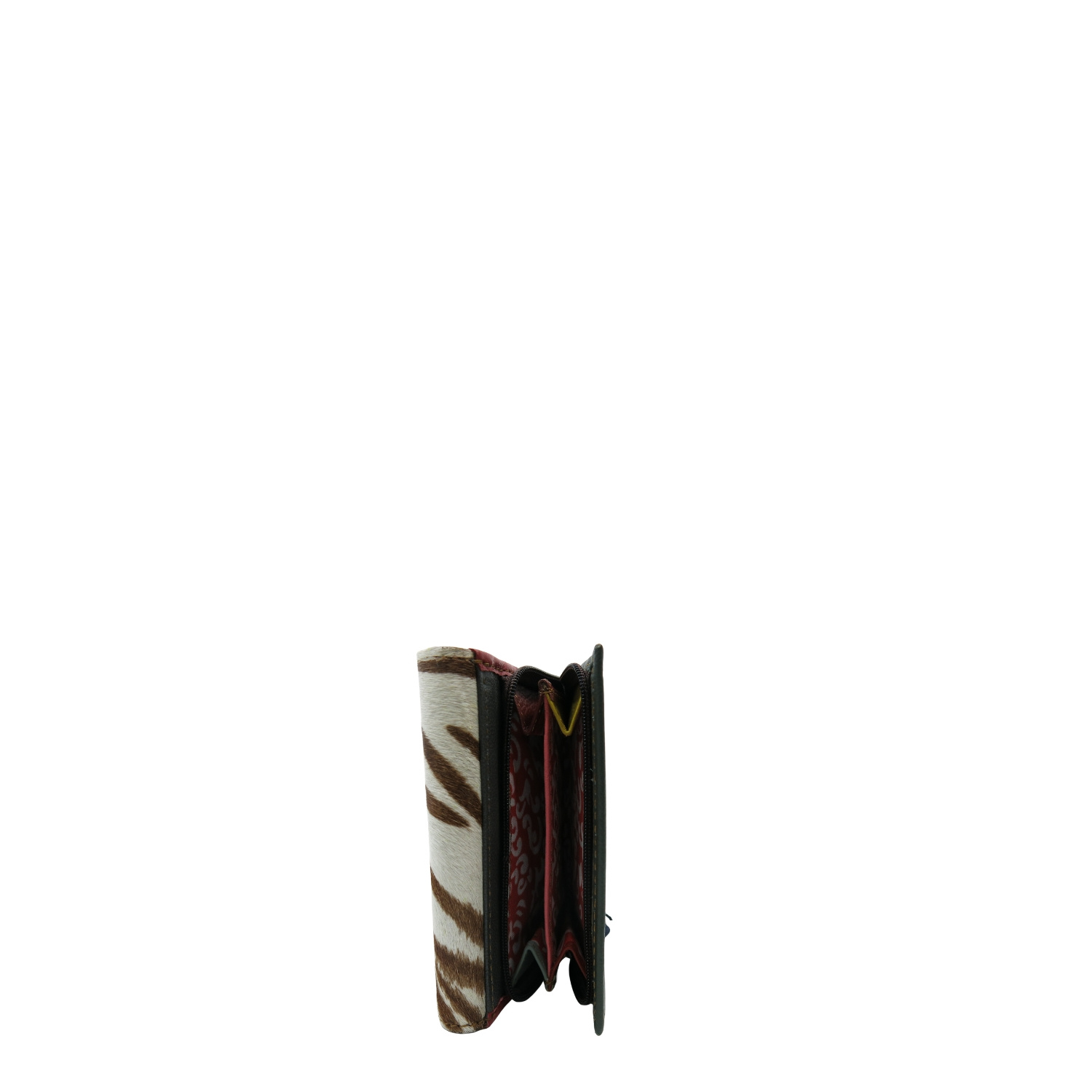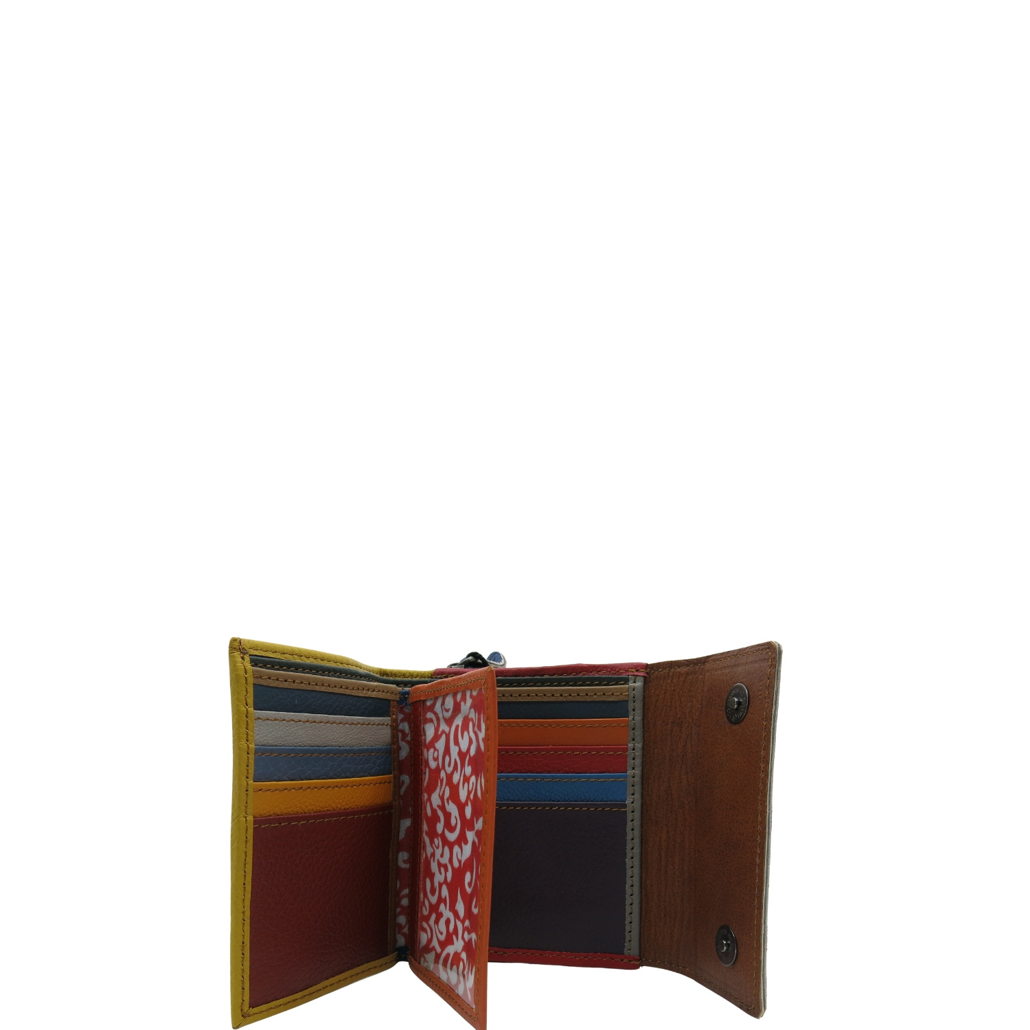 Średniej wielkości portfel wykonany ze skrawków skóry naturalnej. Jego unikalne połączenie kolorystyczne nadaje mu niepowtarzalny charakter, czyniąc go doskonałym dodatkiem. Spełni oczekiwania nawet najbardziej wymagających kobiet.