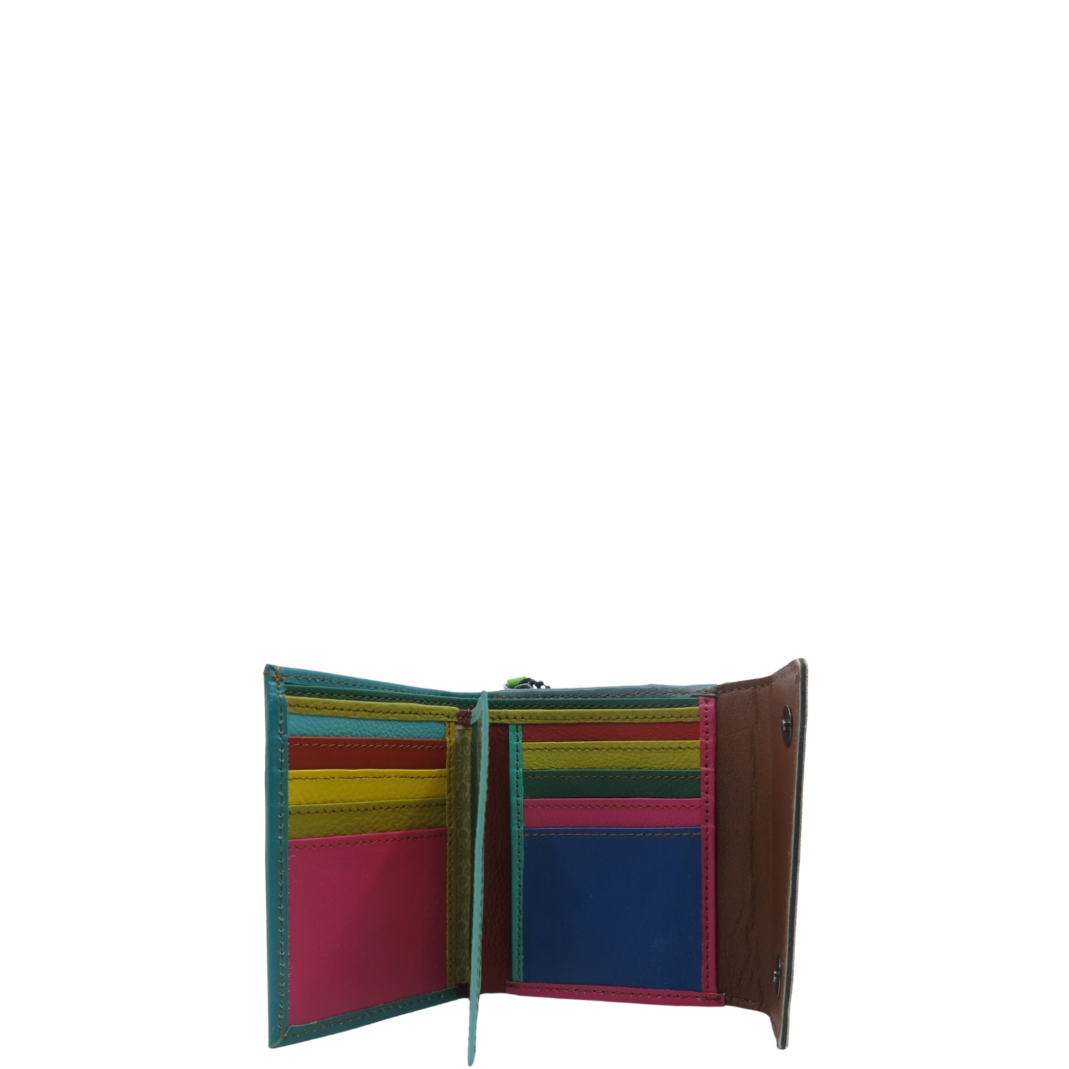 Średniej wielkości portfel wykonany ze skrawków skóry naturalnej. Jego unikalne połączenie kolorystyczne nadaje mu niepowtarzalny charakter, czyniąc go doskonałym dodatkiem. Spełni oczekiwania nawet najbardziej wymagających kobiet.