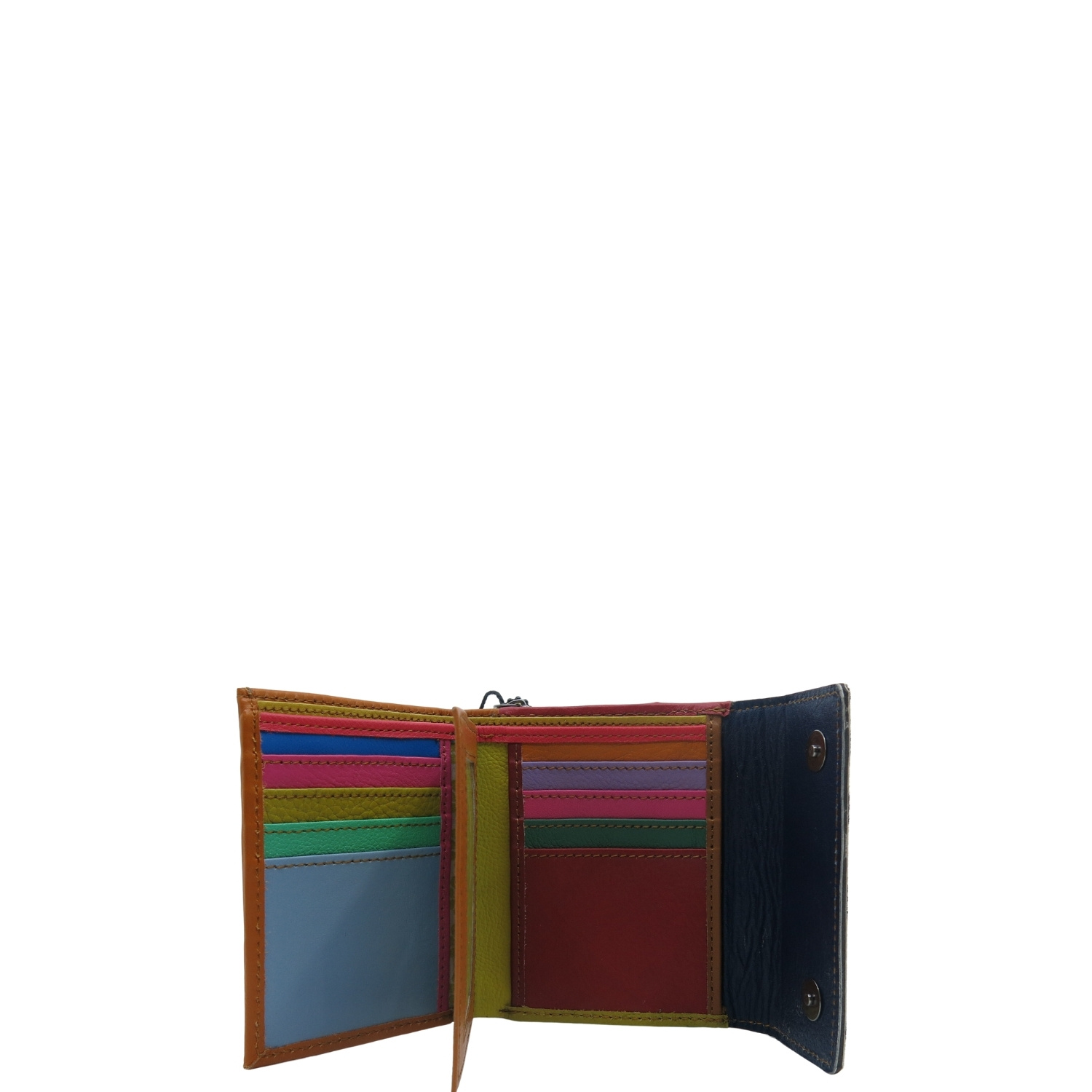 Średniej wielkości portfel wykonany ze skrawków skóry naturalnej. Jego unikalne połączenie kolorystyczne nadaje mu niepowtarzalny charakter, czyniąc go doskonałym dodatkiem. Spełni oczekiwania nawet najbardziej wymagających kobiet.