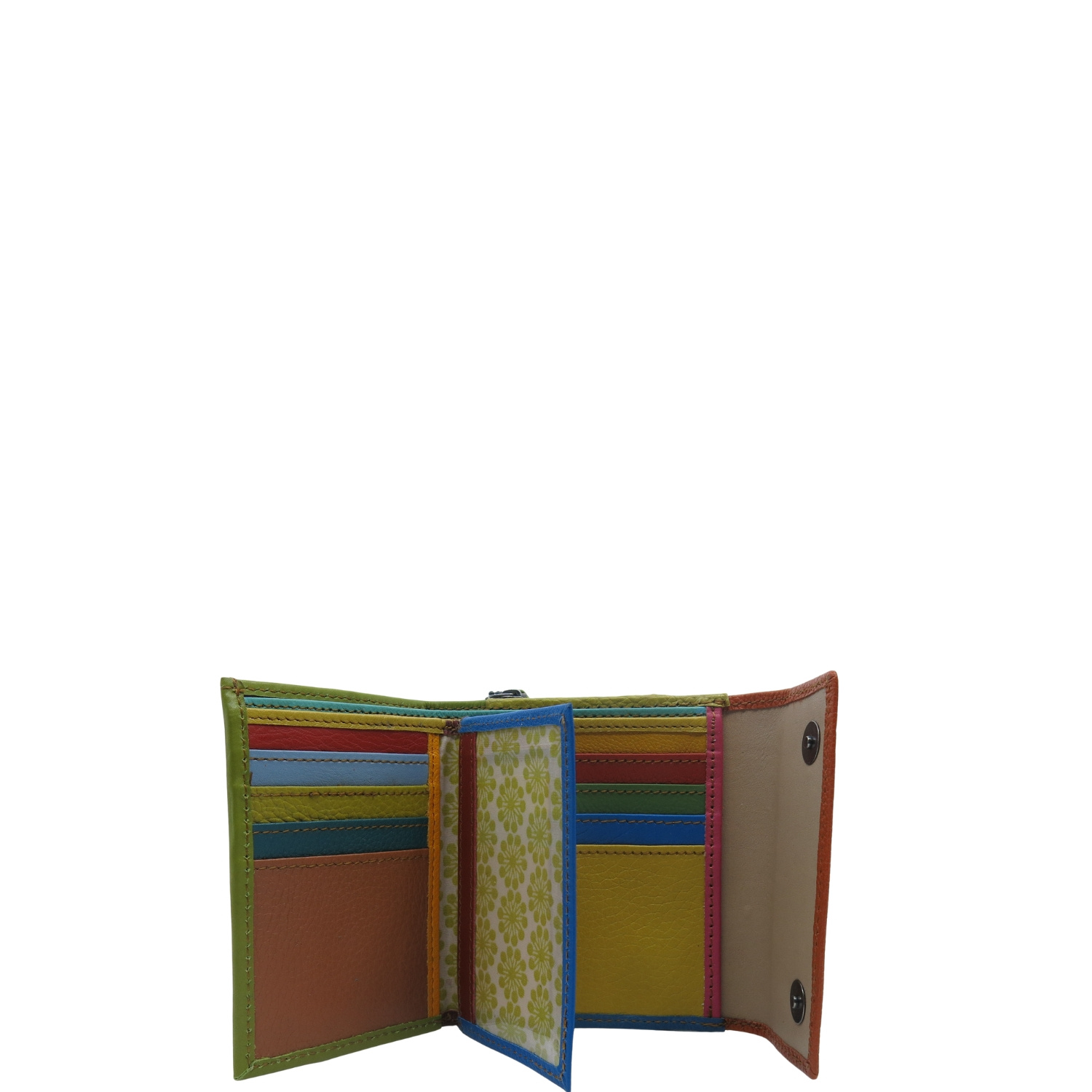 Średniej wielkości portfel wykonany ze skrawków skóry naturalnej. Jego unikalne połączenie kolorystyczne nadaje mu niepowtarzalny charakter, czyniąc go doskonałym dodatkiem. Spełni oczekiwania nawet najbardziej wymagających kobiet.