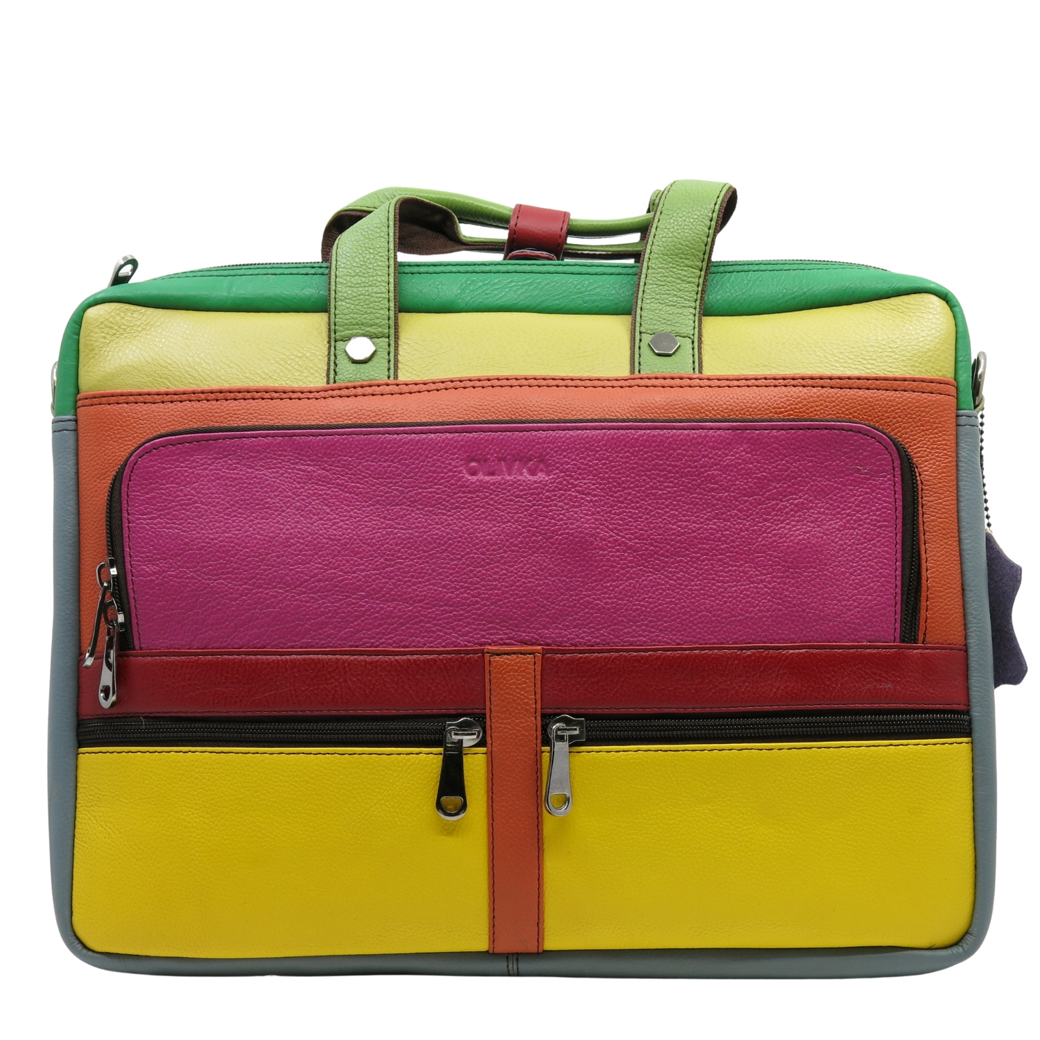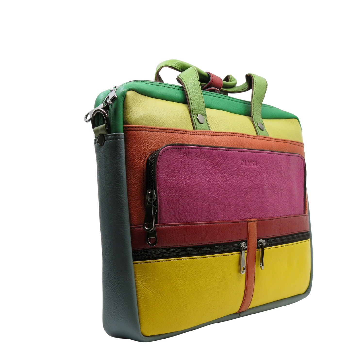 Aktówka jest przecudna i jedyna w swoim rodzaju. Pakowna,posiada wiele przydatnych kieszonek a kolory odważne,dodają uroku i całości:)