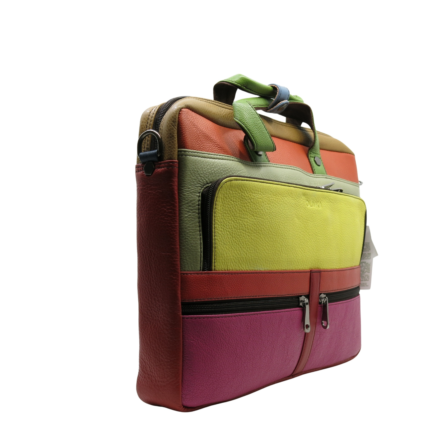 Aktówka jest przecudna i jedyna w swoim rodzaju. Pakowna,posiada wiele przydatnych kieszonek a kolory odważne,dodają uroku i całości:)