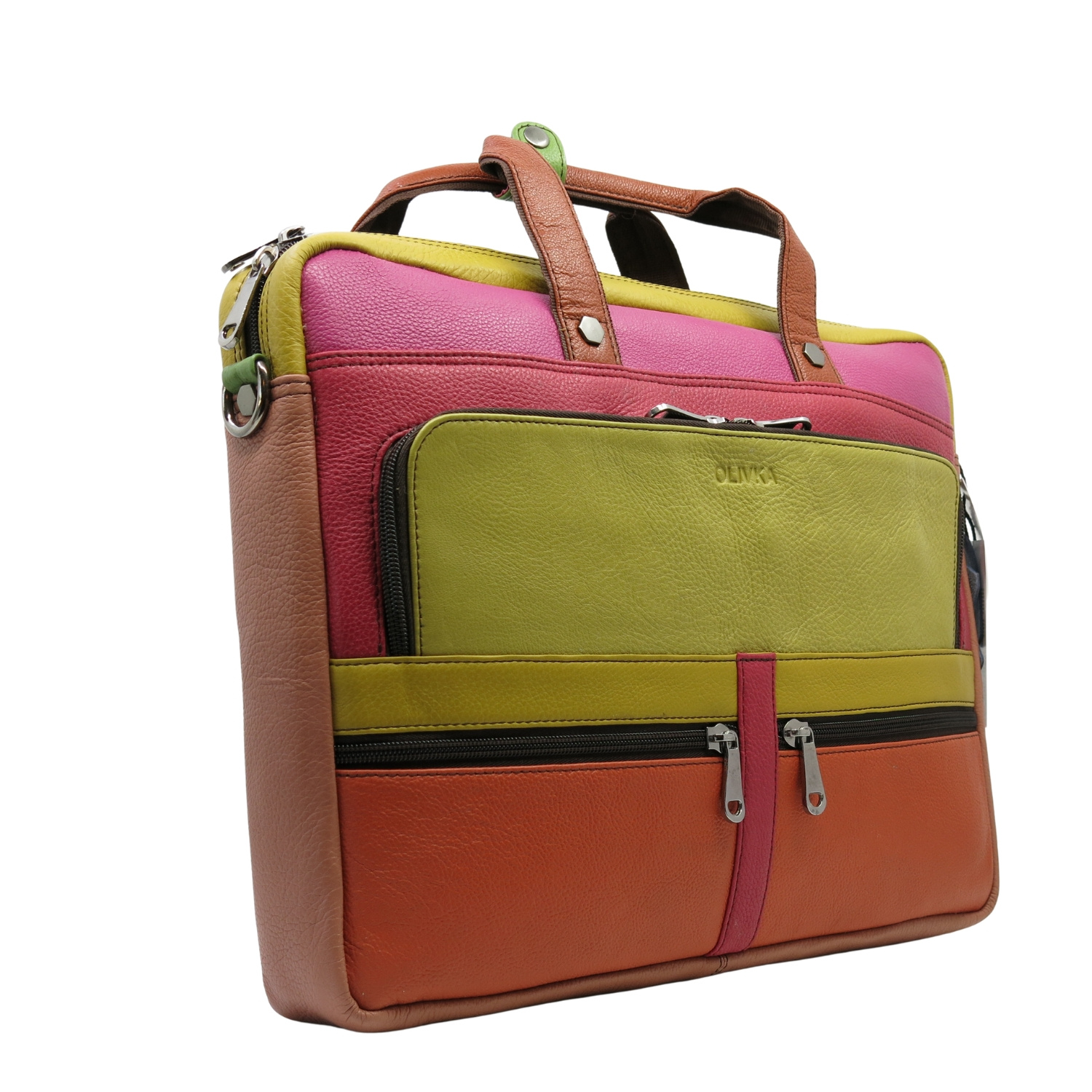Aktówka jest przecudna i jedyna w swoim rodzaju. Pakowna,posiada wiele przydatnych kieszonek a kolory odważne,dodają uroku i całości:)