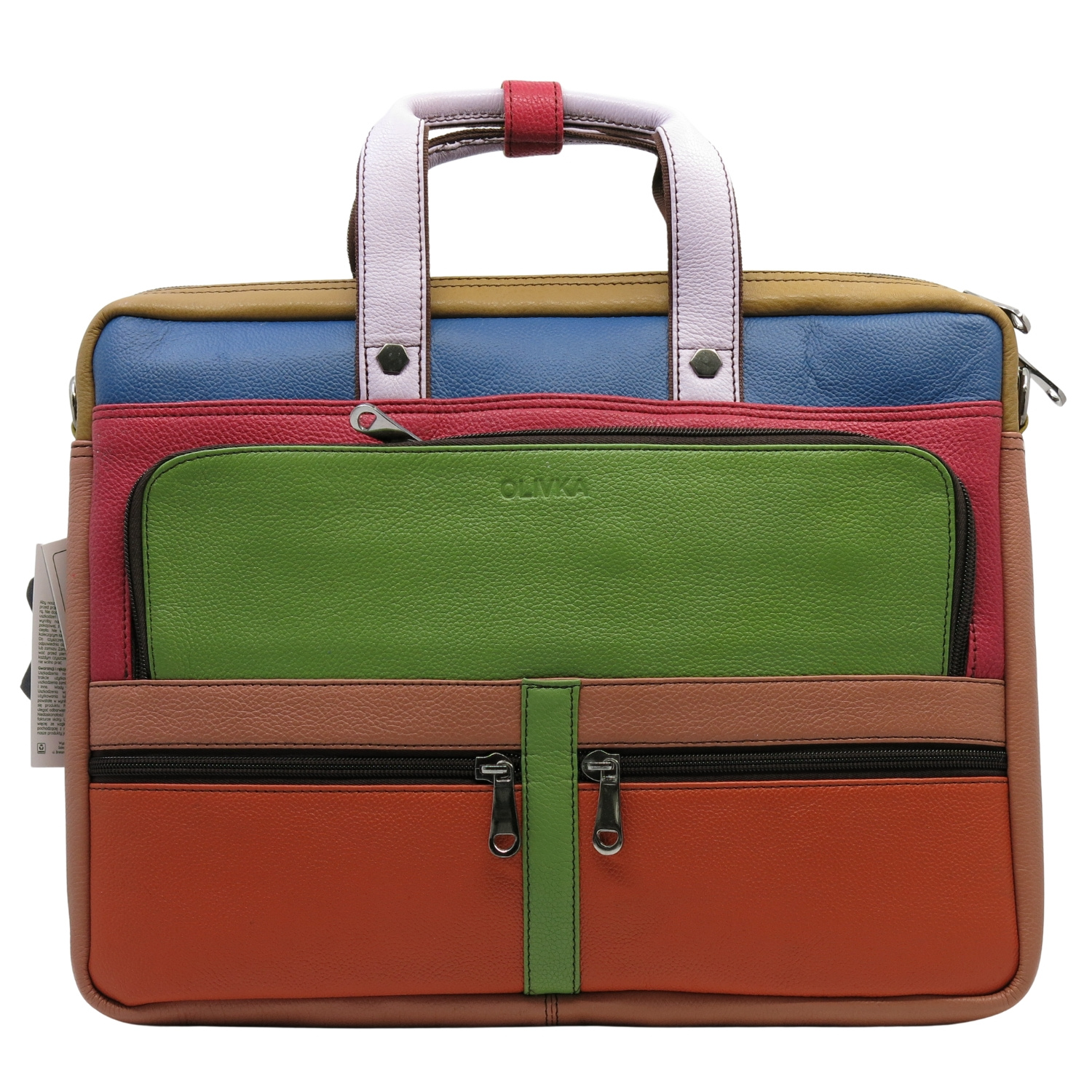 Aktówka jest przecudna i jedyna w swoim rodzaju. Pakowna,posiada wiele przydatnych kieszonek a kolory odważne,dodają uroku i całości:)