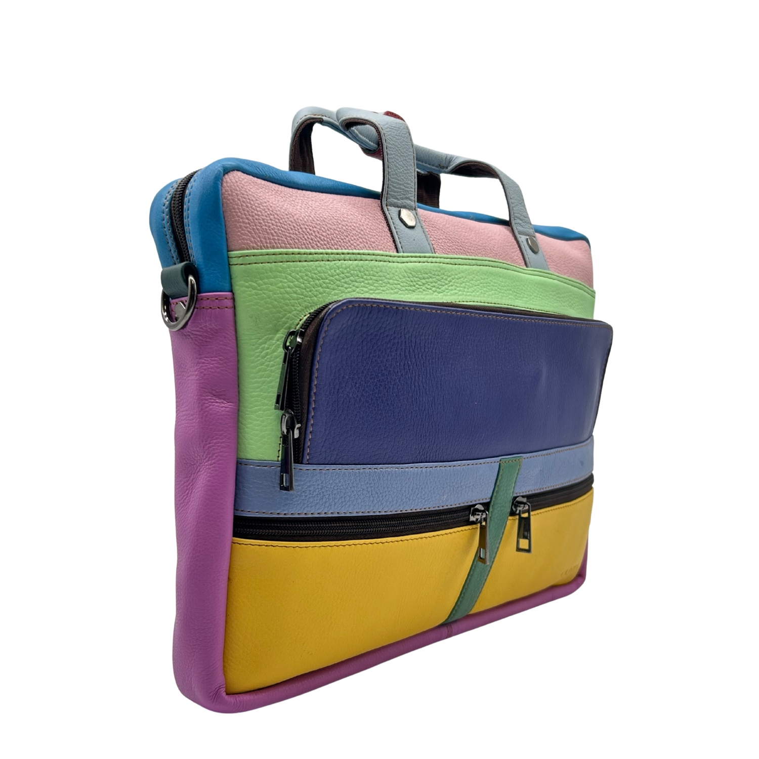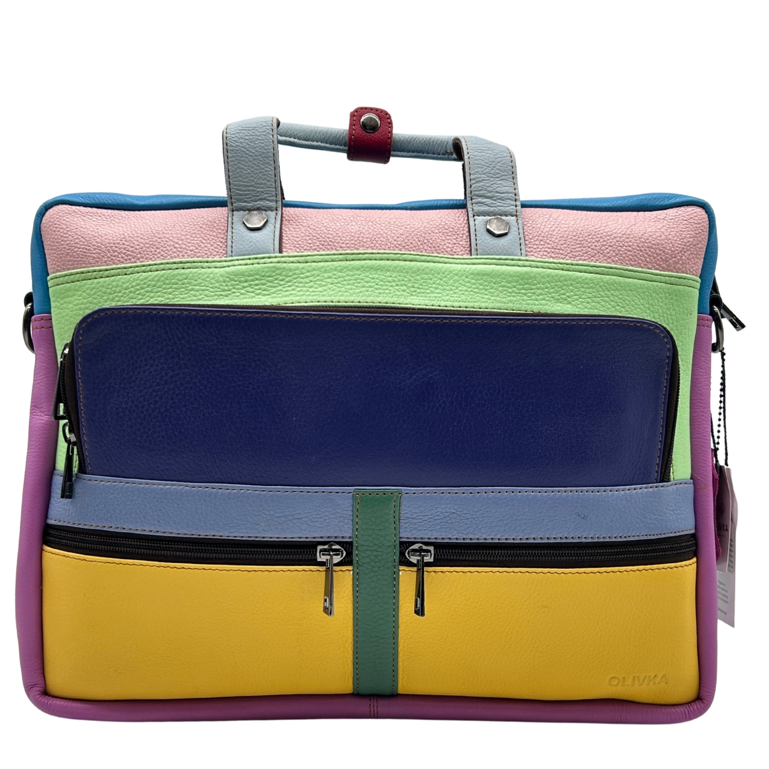 Aktówka jest przecudna i jedyna w swoim rodzaju. Pakowna,posiada wiele przydatnych kieszonek a kolory odważne,dodają uroku i całości:)