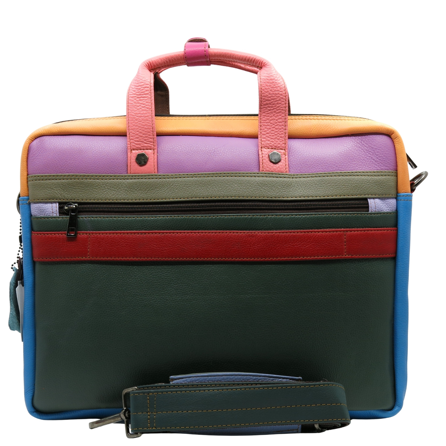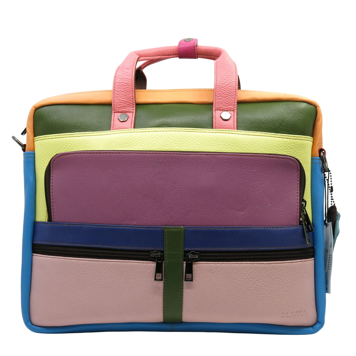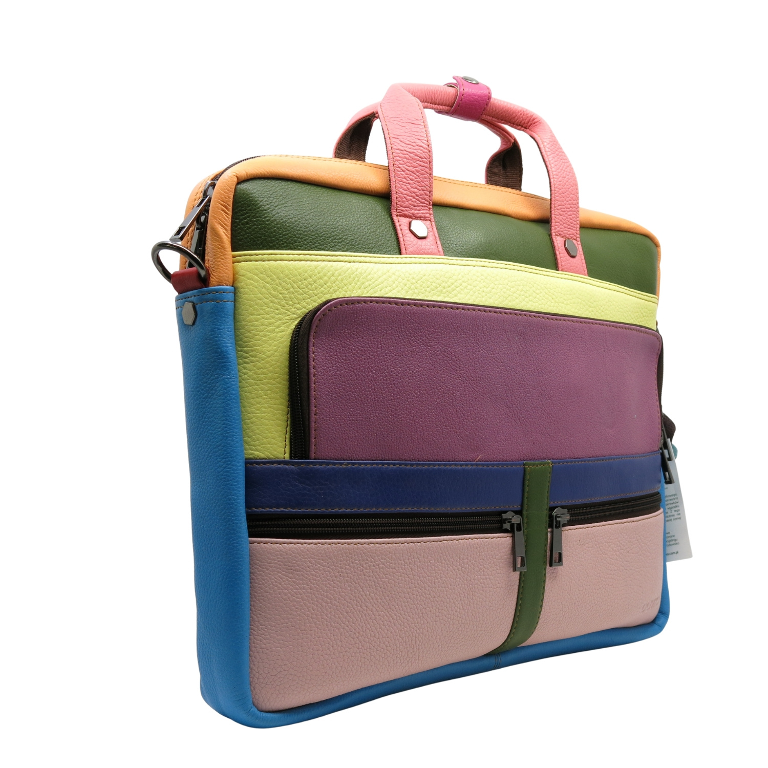 Aktówka jest przecudna i jedyna w swoim rodzaju. Pakowna,posiada wiele przydatnych kieszonek a kolory odważne,dodają uroku i całości:)