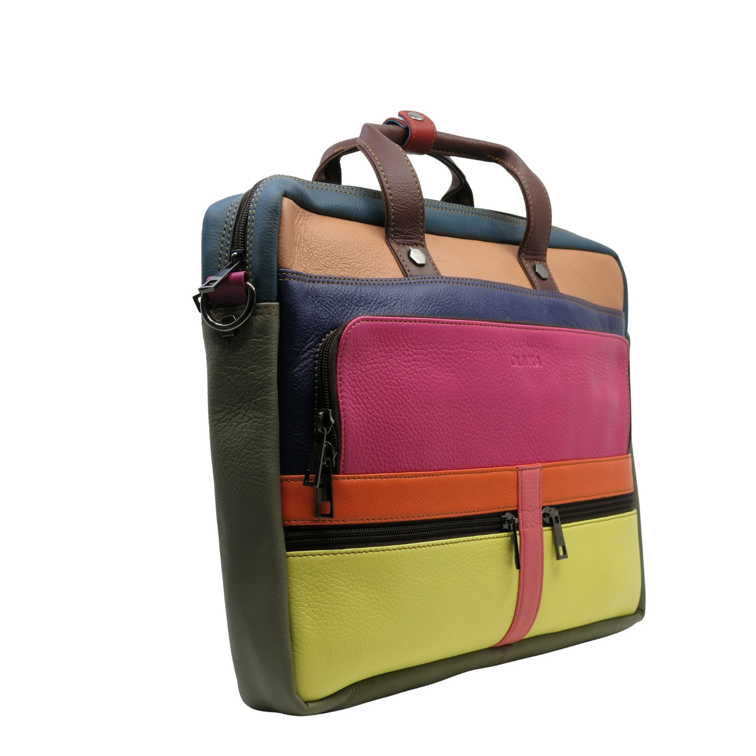 Aktówka jest przecudna i jedyna w swoim rodzaju. Pakowna,posiada wiele przydatnych kieszonek a kolory odważne,dodają uroku i całości:)