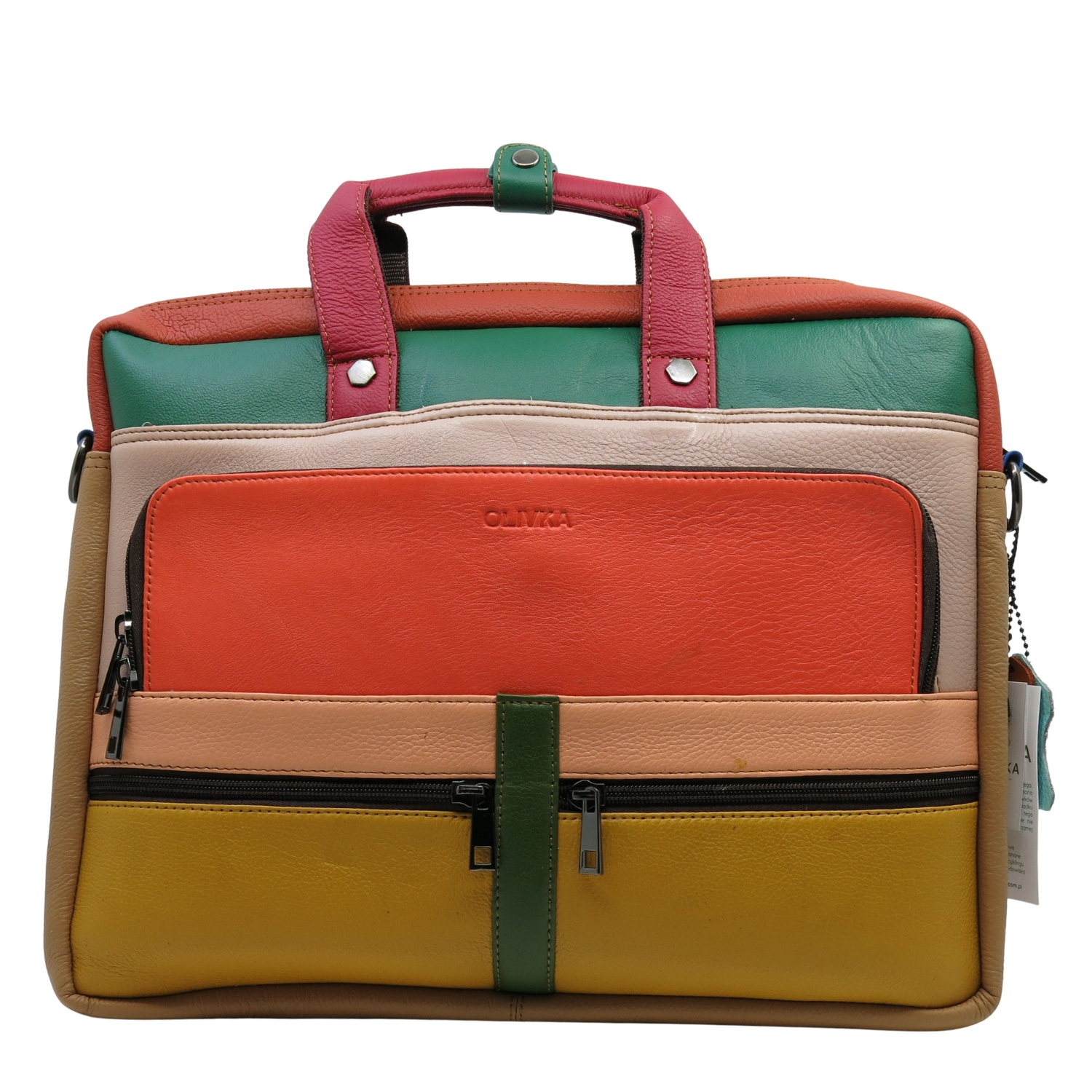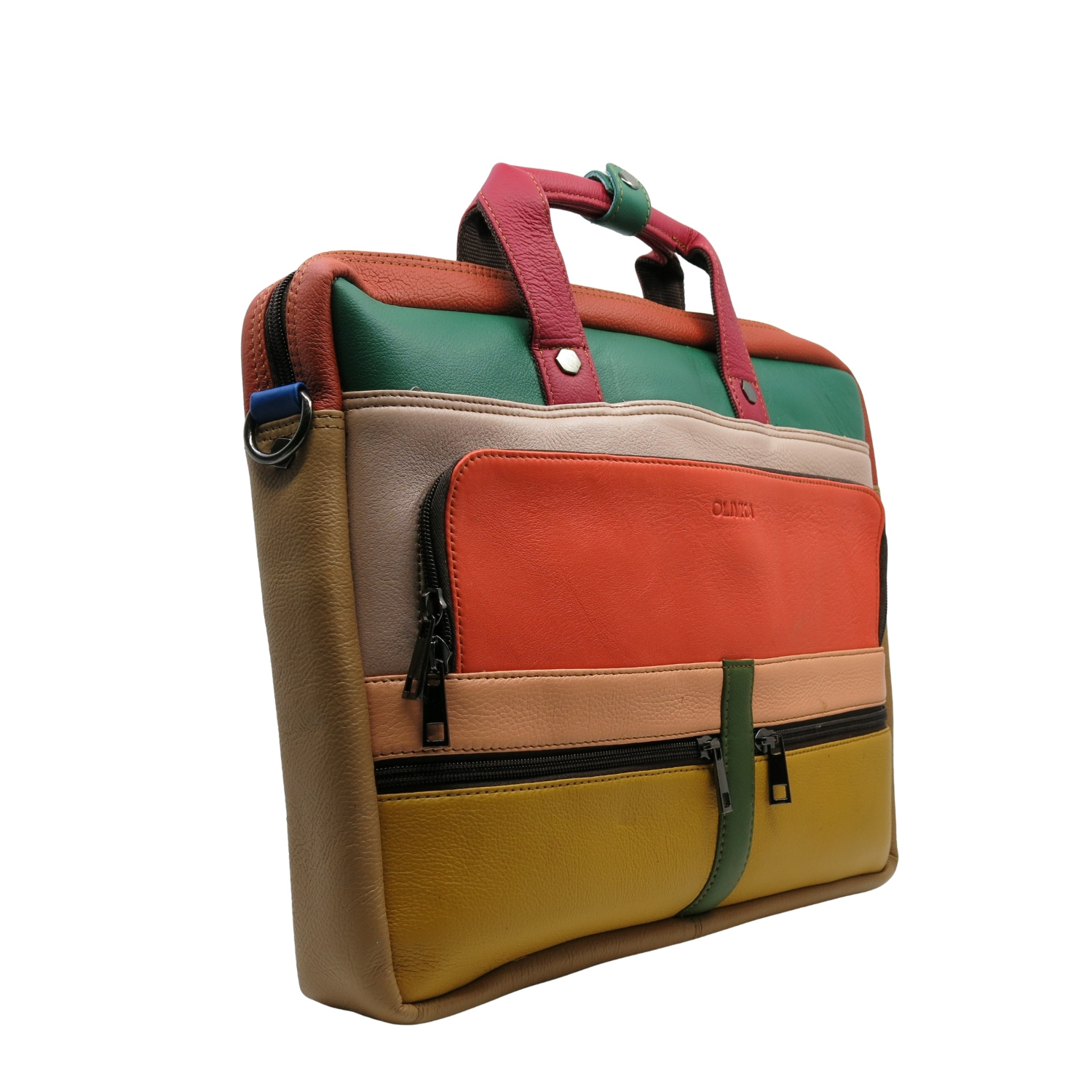 Aktówka jest przecudna i jedyna w swoim rodzaju. Pakowna,posiada wiele przydatnych kieszonek a kolory odważne,dodają uroku i całości:)