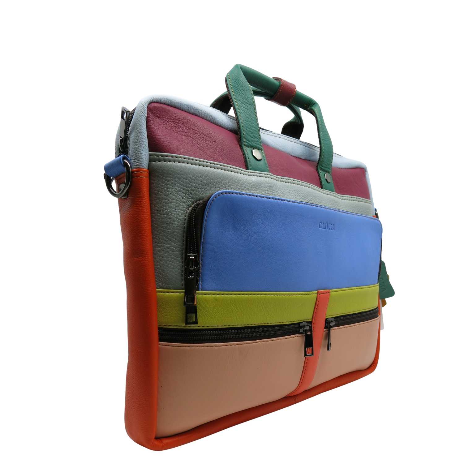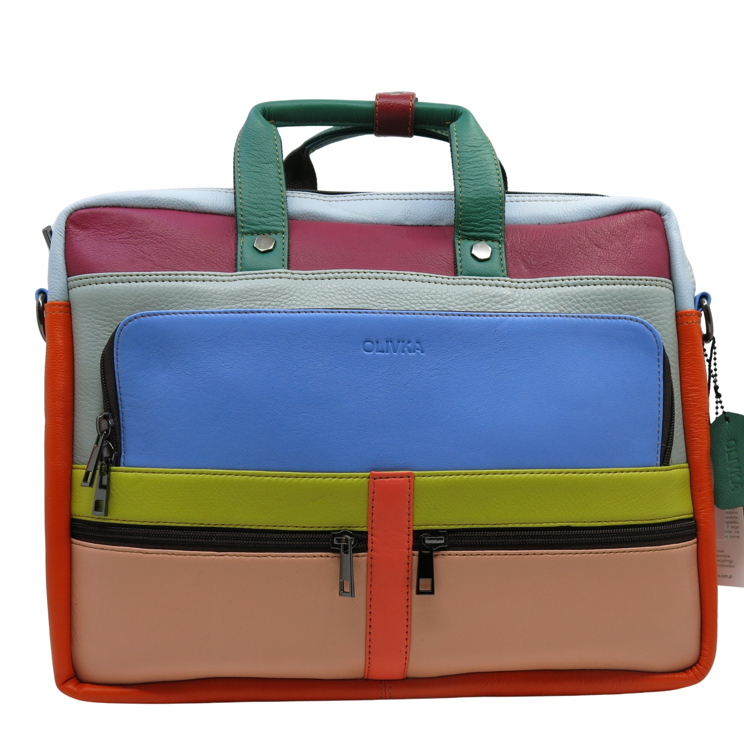 Aktówka jest przecudna i jedyna w swoim rodzaju. Pakowna,posiada wiele przydatnych kieszonek a kolory odważne,dodają uroku i całości:)