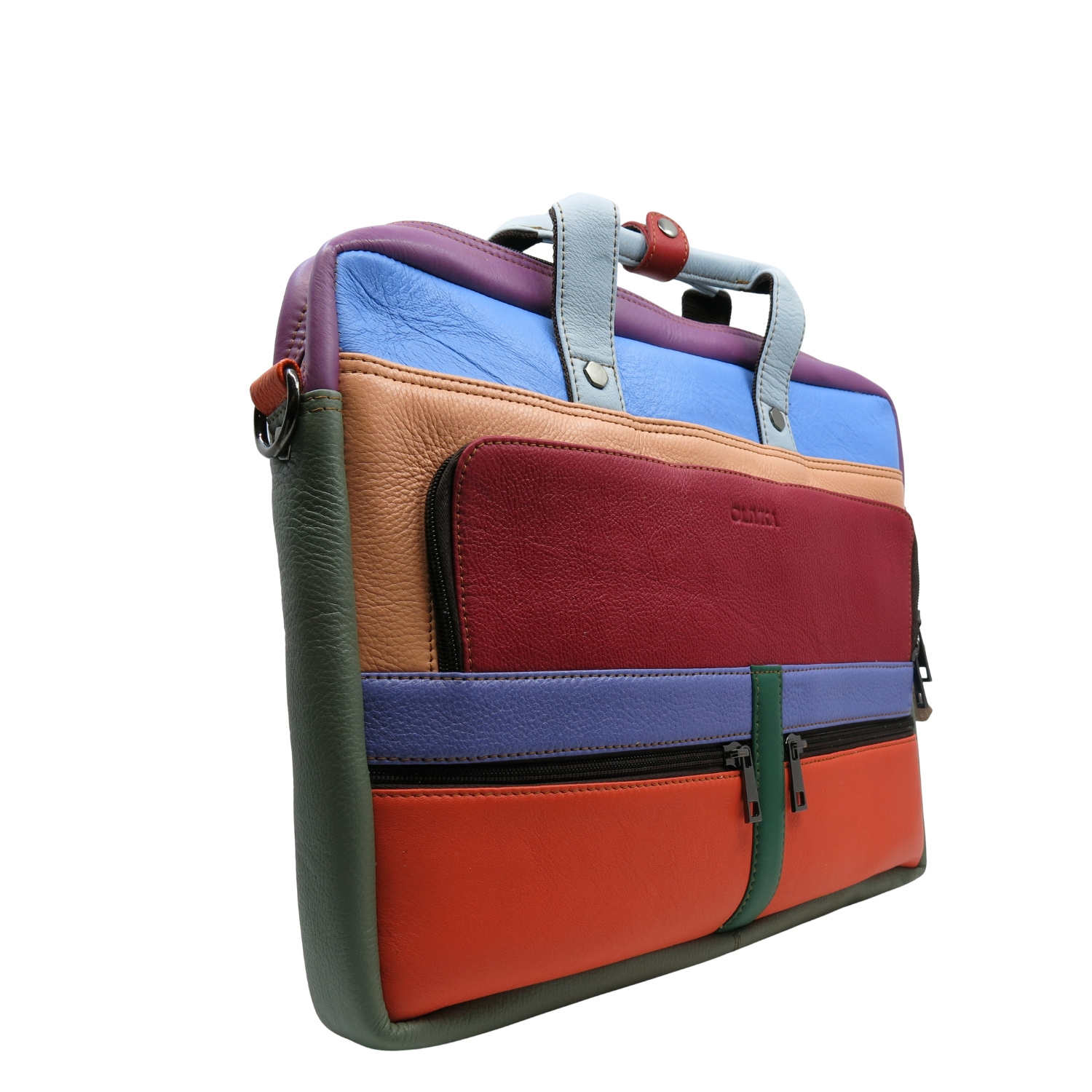 Aktówka jest przecudna i jedyna w swoim rodzaju. Pakowna,posiada wiele przydatnych kieszonek a kolory odważne,dodają uroku i całości:)