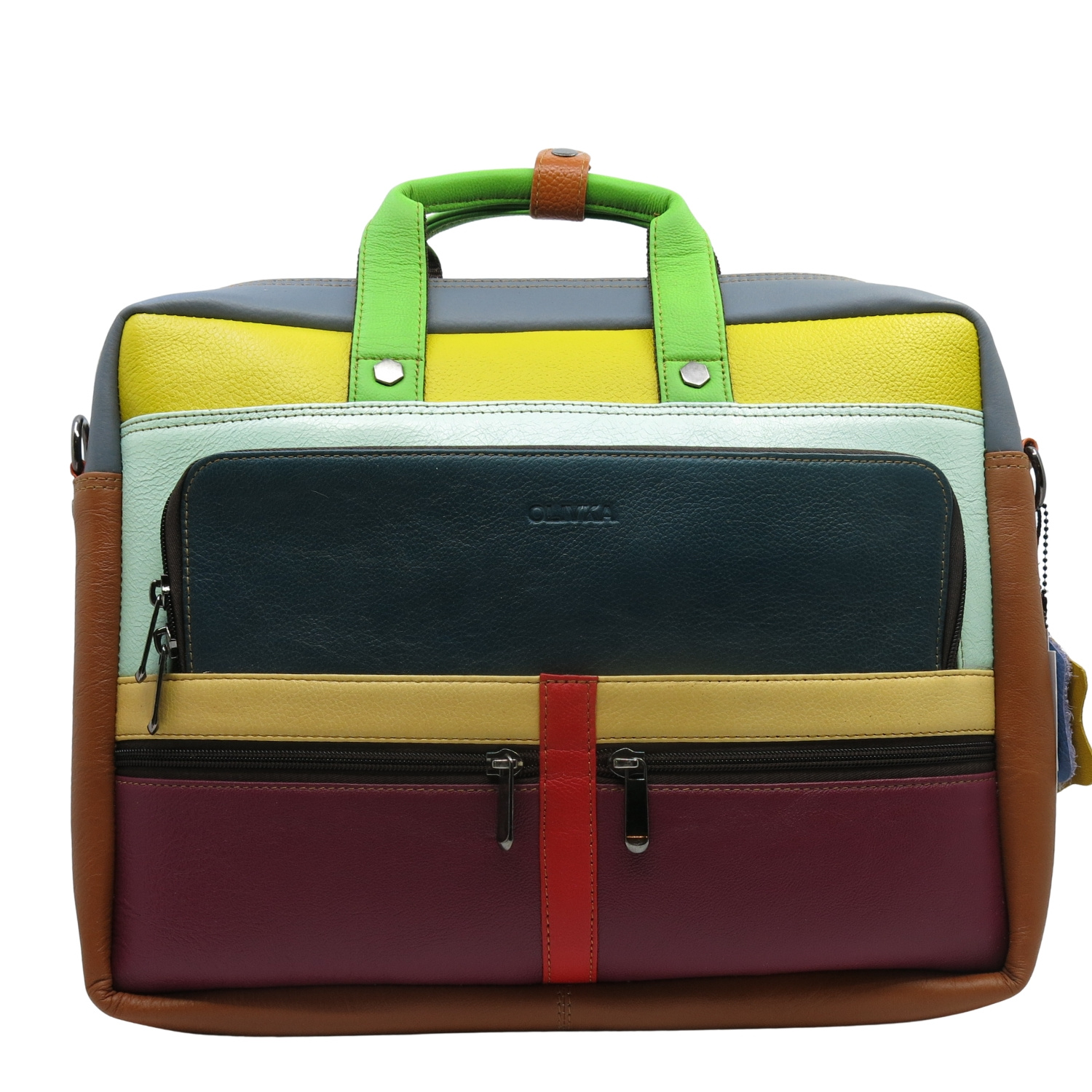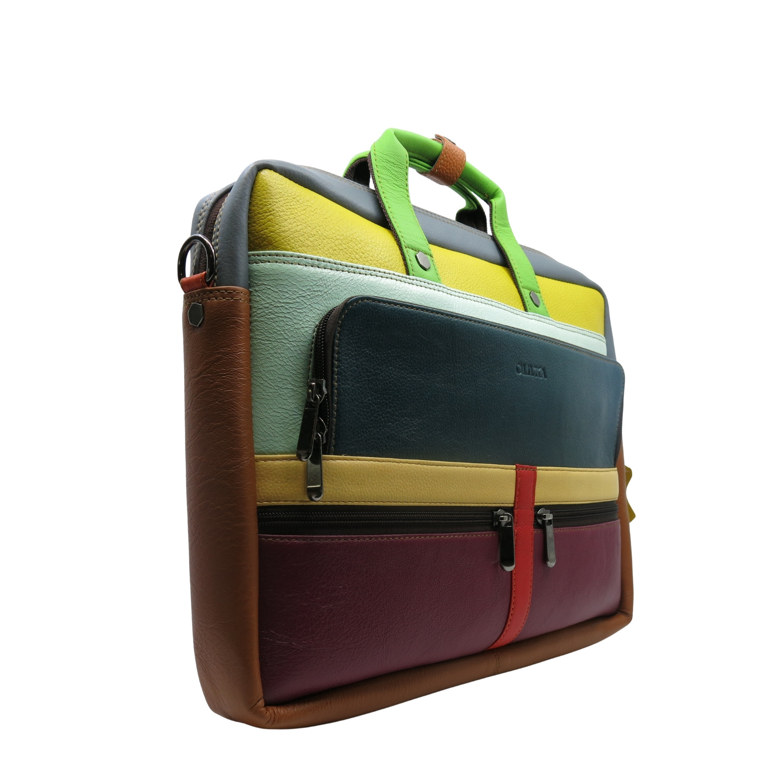 Aktówka jest przecudna i jedyna w swoim rodzaju. Pakowna,posiada wiele przydatnych kieszonek a kolory odważne,dodają uroku i całości:)