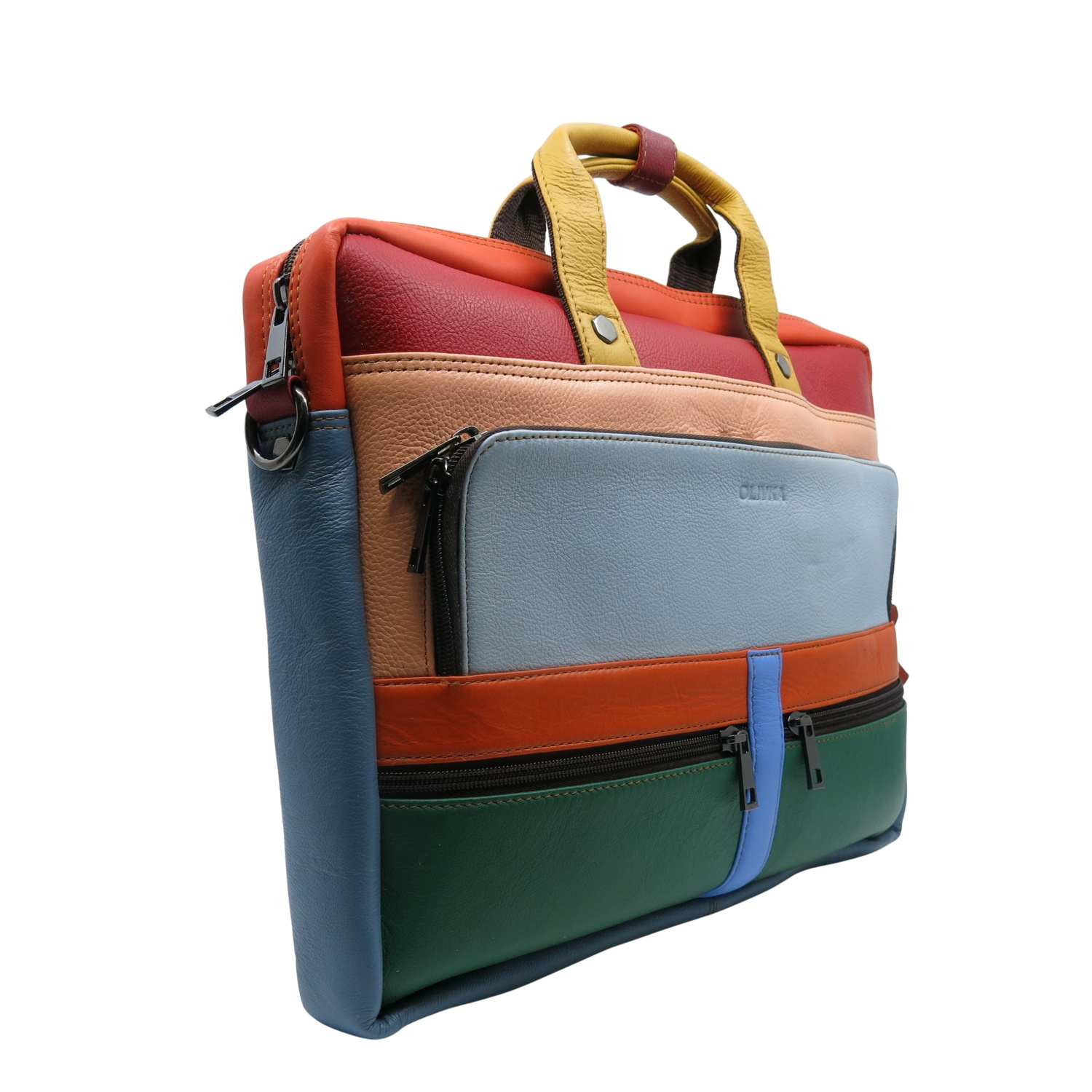 Aktówka jest przecudna i jedyna w swoim rodzaju. Pakowna,posiada wiele przydatnych kieszonek a kolory odważne,dodają uroku i całości:)