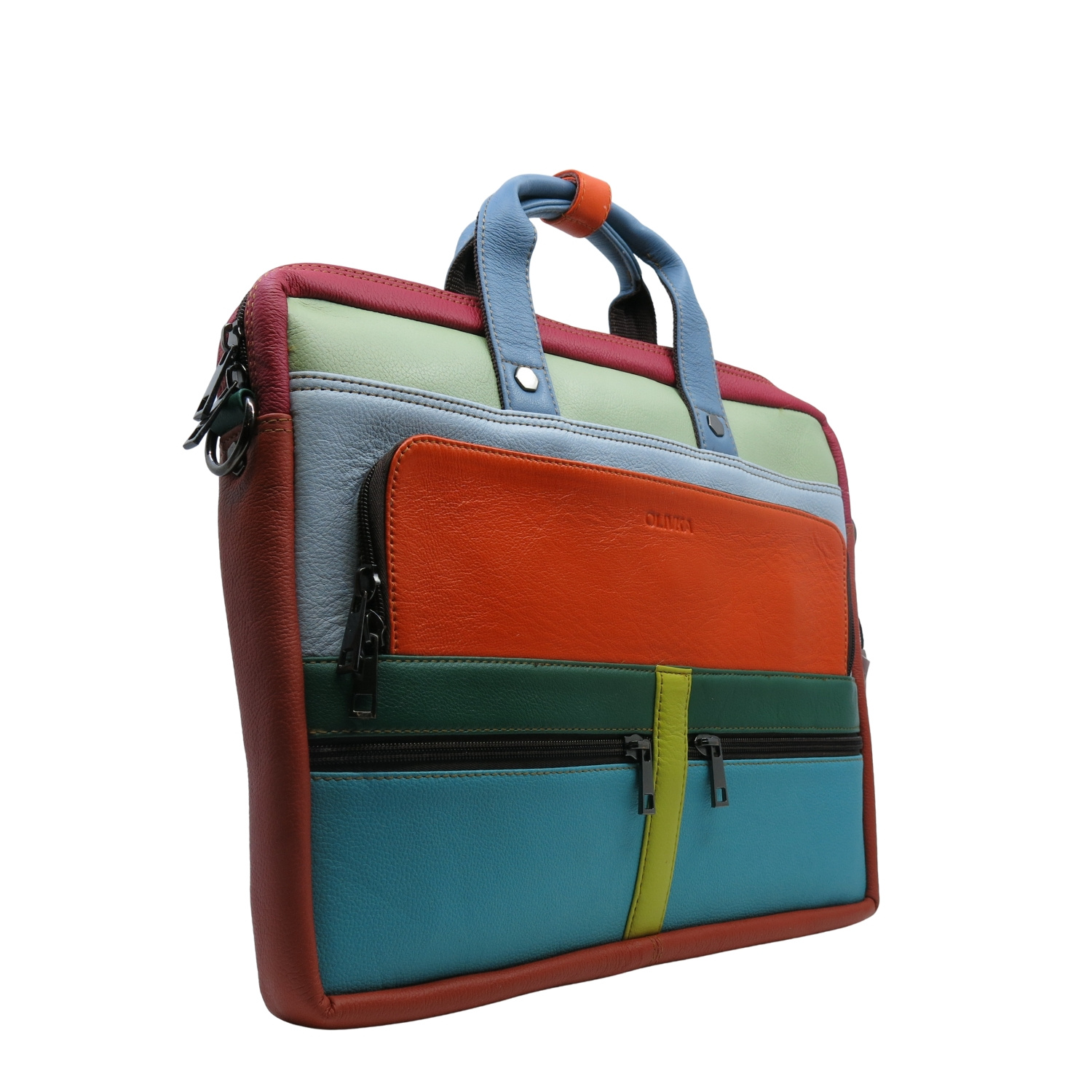 Aktówka jest przecudna i jedyna w swoim rodzaju. Pakowna,posiada wiele przydatnych kieszonek a kolory odważne,dodają uroku i całości:)