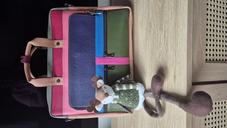 Aktówka jest przecudna i jedyna w swoim rodzaju. Pakowna,posiada wiele przydatnych kieszonek a kolory odważne,dodają uroku i całości:)