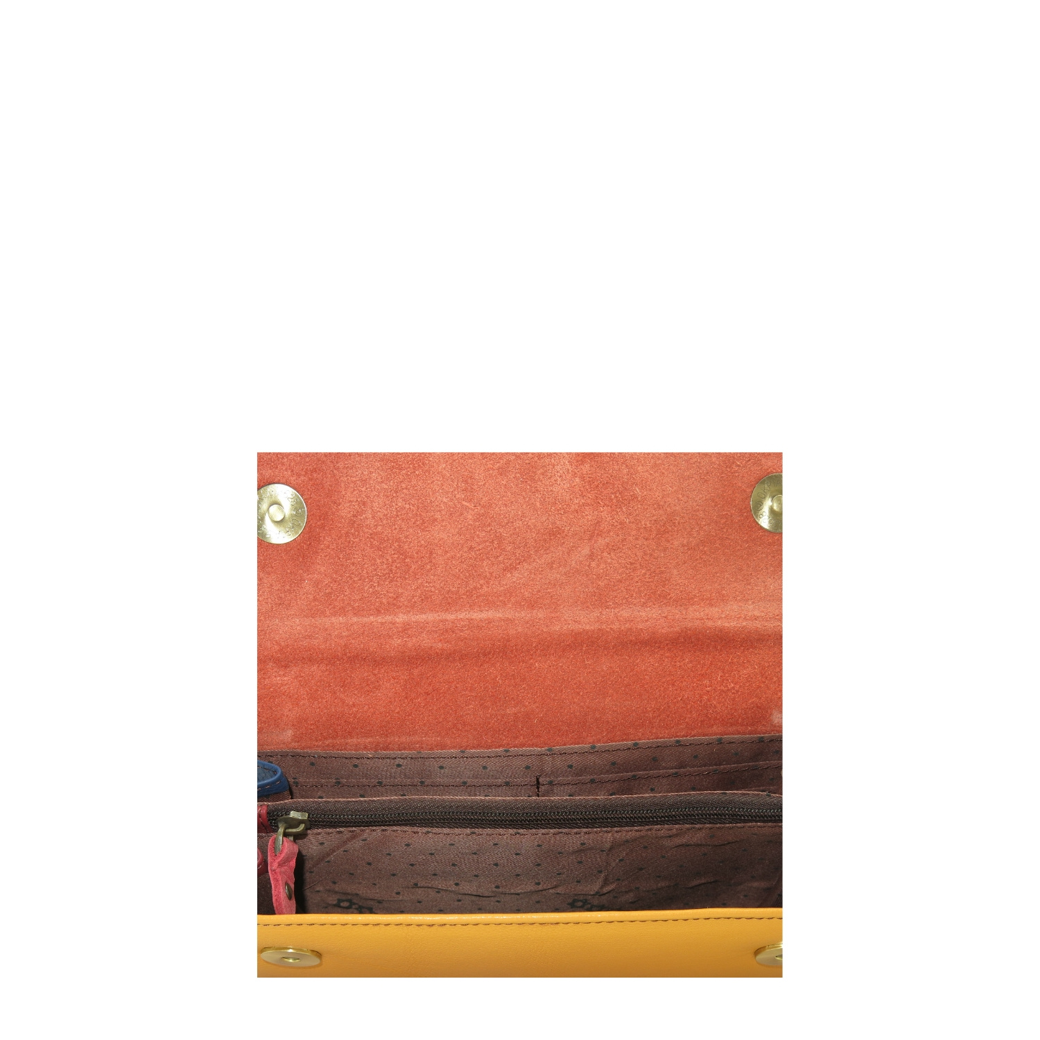 - jedna ze stron zamykana na klapkę z magnesami, wewnątrz przegroda zamykana na suwak, przegrody na karty