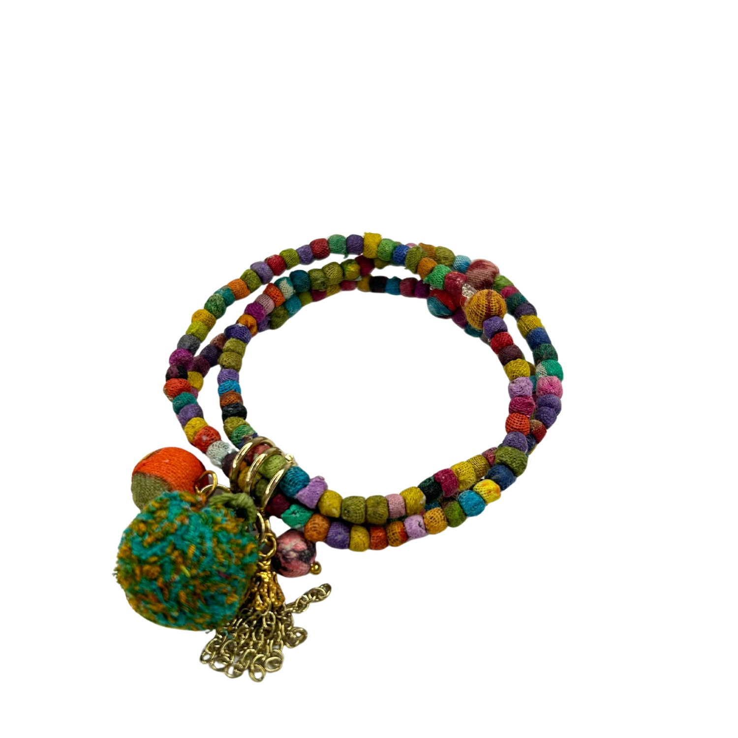 Biżuteria którą widzisz to nie tylko piękny dodatek. Każda sztuka została ręcznie wykonana z bawełny z recyklingu – pozyskanej z tradycyjnych hinduskich sari. Jest przyjazna środowisku – wykorzystuje odpady tekstylne i zmniejsza zużycie surowców. Unikatowa jak kobiety - rzemieślniczki, które ją dla Ciebie stworzyły bo każda sztuka jest niepowtarzalna. Zrównoważona moda to nie tylko trend, lecz konieczność dla dobra planety - świadome wybory wspierają pozytywne zmiany w branży modowej i chronią środowisko. Twój zakup ma znaczenie. Wzmacnia finansowo pozycję kobiet, wspiera ich rodziny i daje nadzieję na trwałą zmianę.