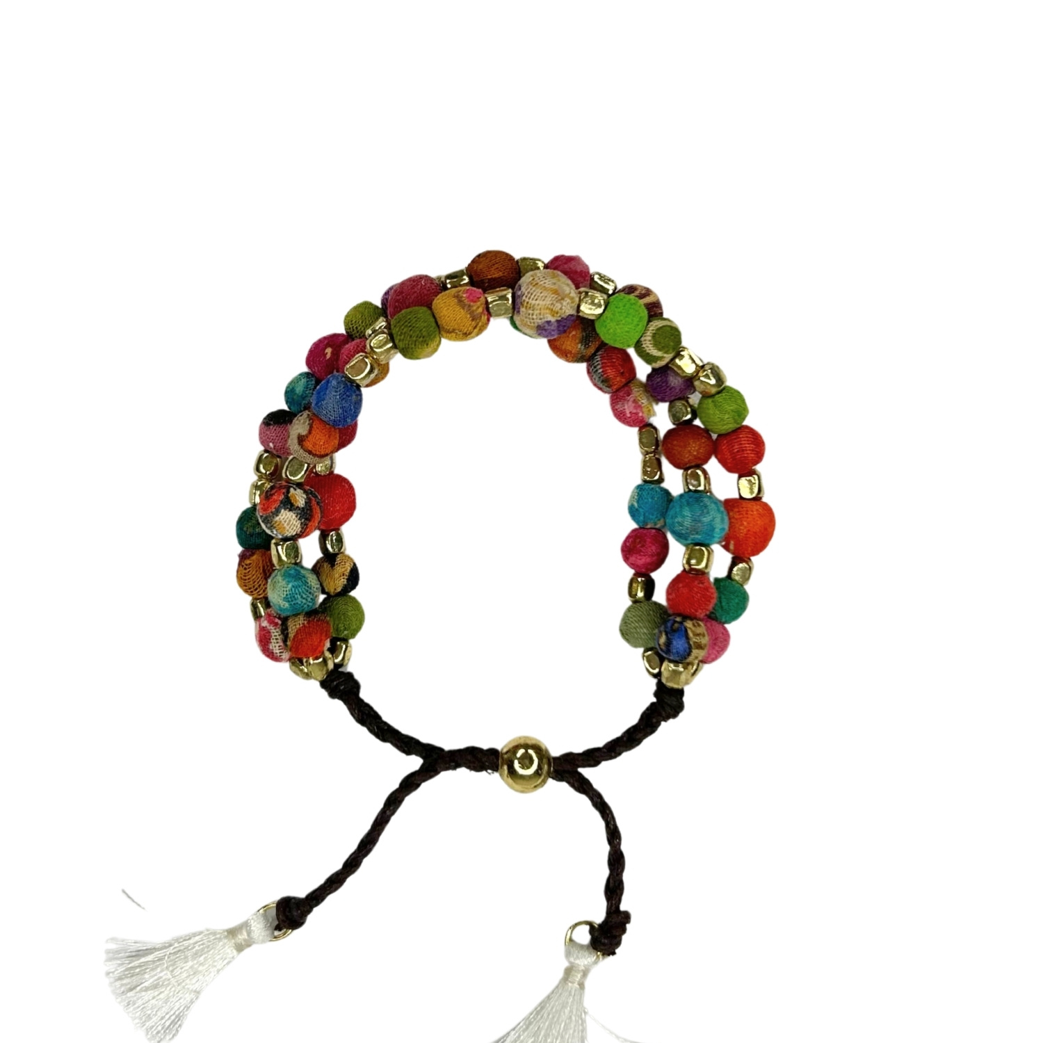 Biżuteria którą widzisz to nie tylko piękny dodatek. Każda sztuka została ręcznie wykonana z bawełny z recyklingu – pozyskanej z tradycyjnych hinduskich sari. Jest przyjazna środowisku – wykorzystuje odpady tekstylne i zmniejsza zużycie surowców. Unikatowa jak kobiety - rzemieślniczki, które ją dla Ciebie stworzyły bo każda sztuka jest niepowtarzalna. Zrównoważona moda to nie tylko trend, lecz konieczność dla dobra planety - świadome wybory wspierają pozytywne zmiany w branży modowej i chronią środowisko. Twój zakup ma znaczenie. Wzmacnia finansowo pozycję kobiet, wspiera ich rodziny i daje nadzieję na trwałą zmianę.