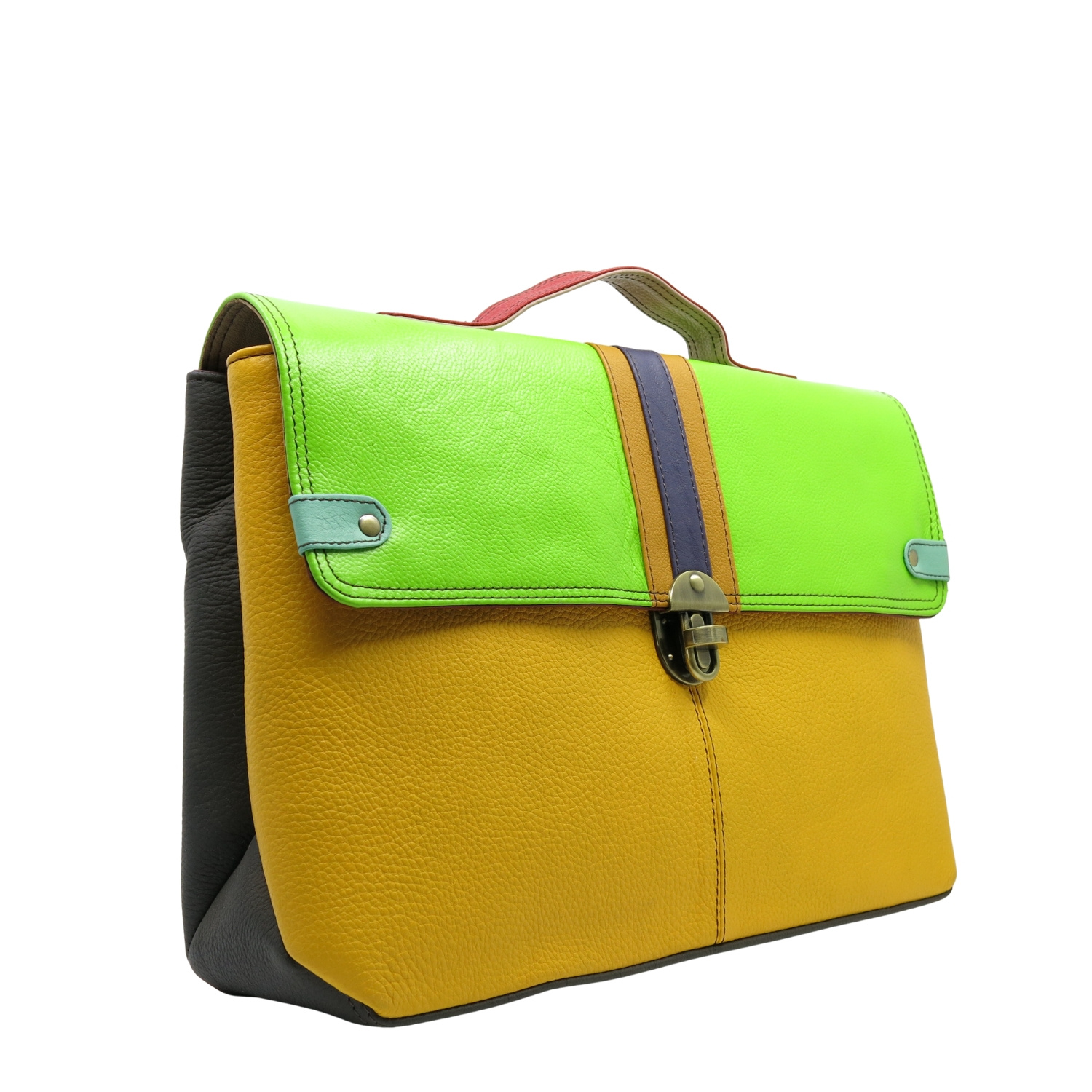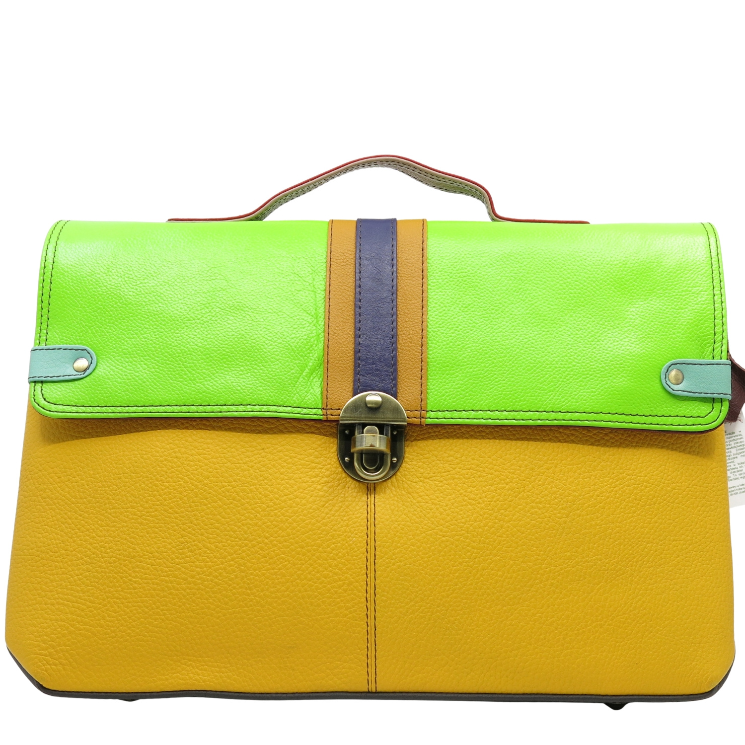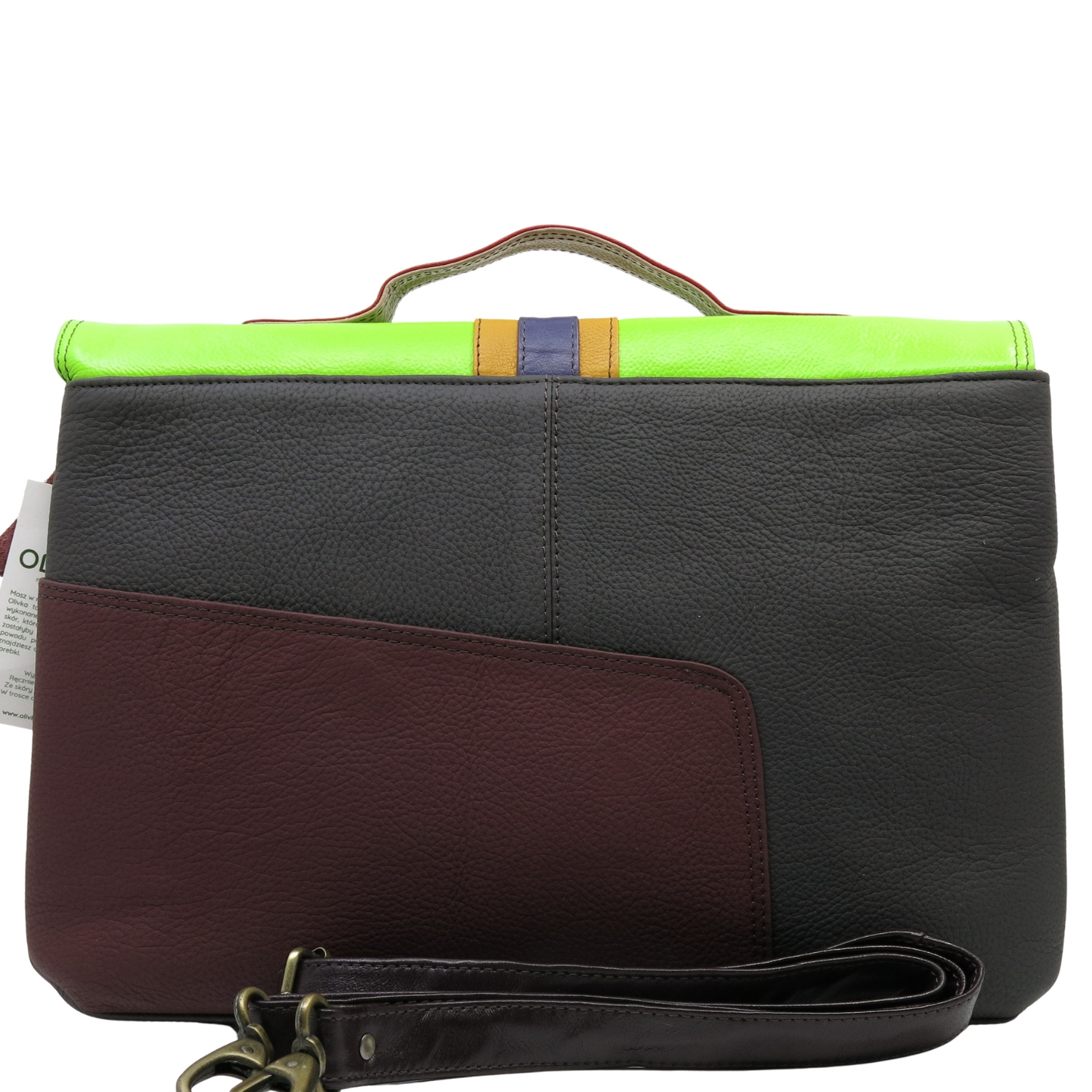 Aktówka, która jest idealnym połączeniem funkcjonalności i elegancji. Wykonana ze skrawków skóry naturalnej, o efektownym połączeniu kolorystycznym, wprowadzi nutę luksusu do Twojego stylu. Wygodna skórzana rączka oraz długi, regulowany pasek, zapewniają komfort noszenia.