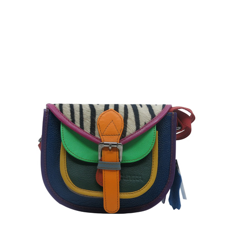 Przepiękna torebka wykonana ze skrawków skóry naturalnej, która doskonale uzupełni zarówno codzienne, jak i bardziej formalne stylizacje, dodając im niepowtarzalnego uroku i klasy. Torebka jest utrzymana w unikalnej, wielokolorowej gamie barw, co sprawia, że każdy egzemplarz jest wyjątkowy.