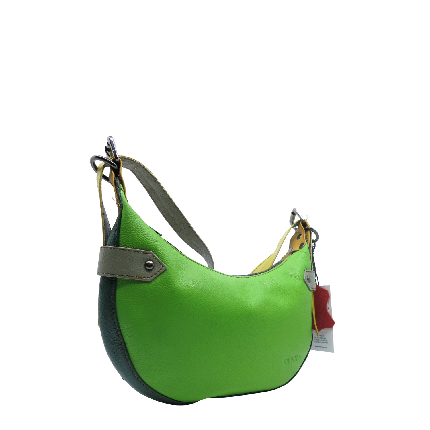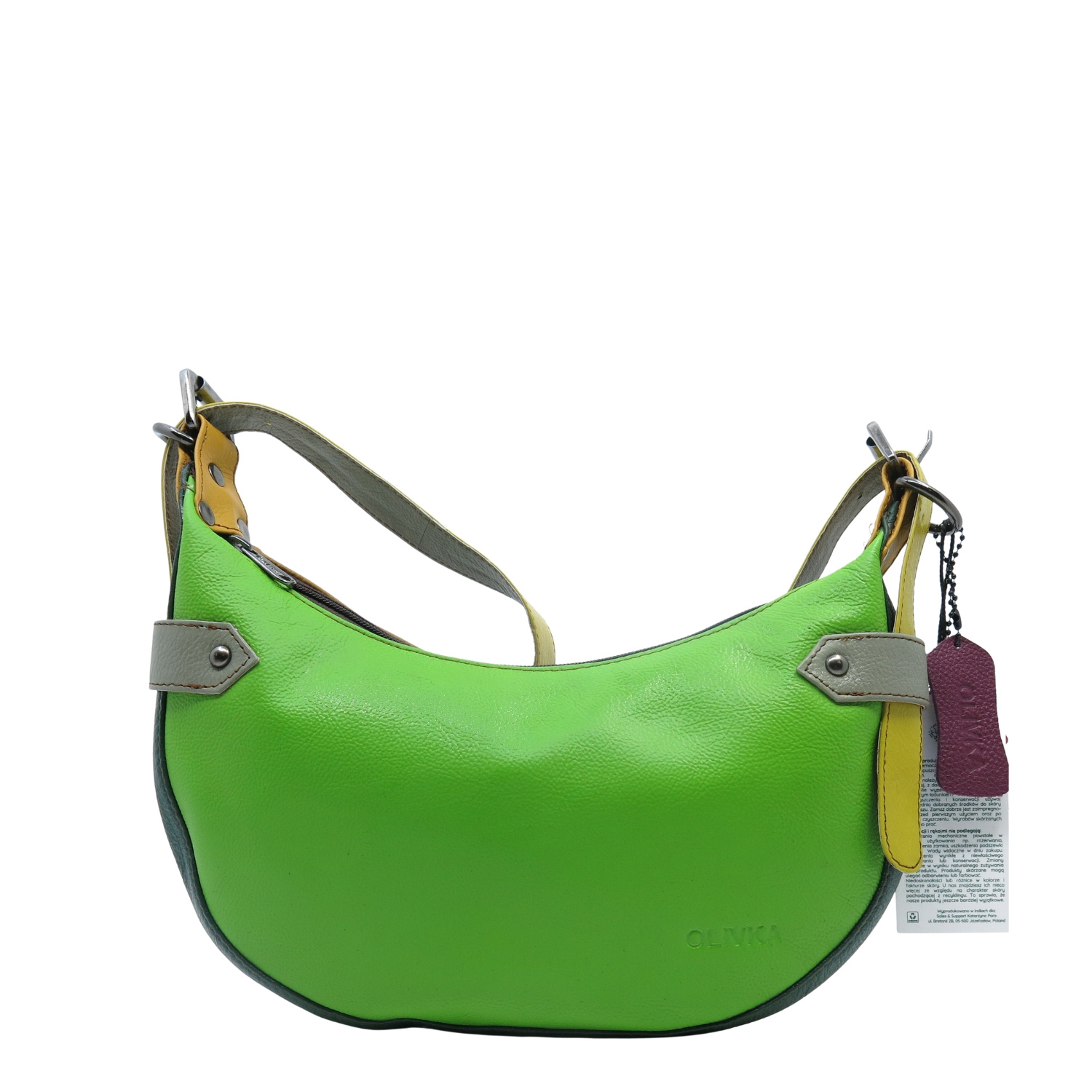 Torebka na ramię, która łączy styl z ideą świadomej mody. Uszyta z naturalnej skóry pochodzącej z odzysku - z myślą o środowisku i unikatowości. Każda torebka powstaje ze skrawków materiałów, dzięki czemu wersja kolorystyczna jest jedyna w swoim rodzaju – nie ma dwóch takich samych egzemplarzy.