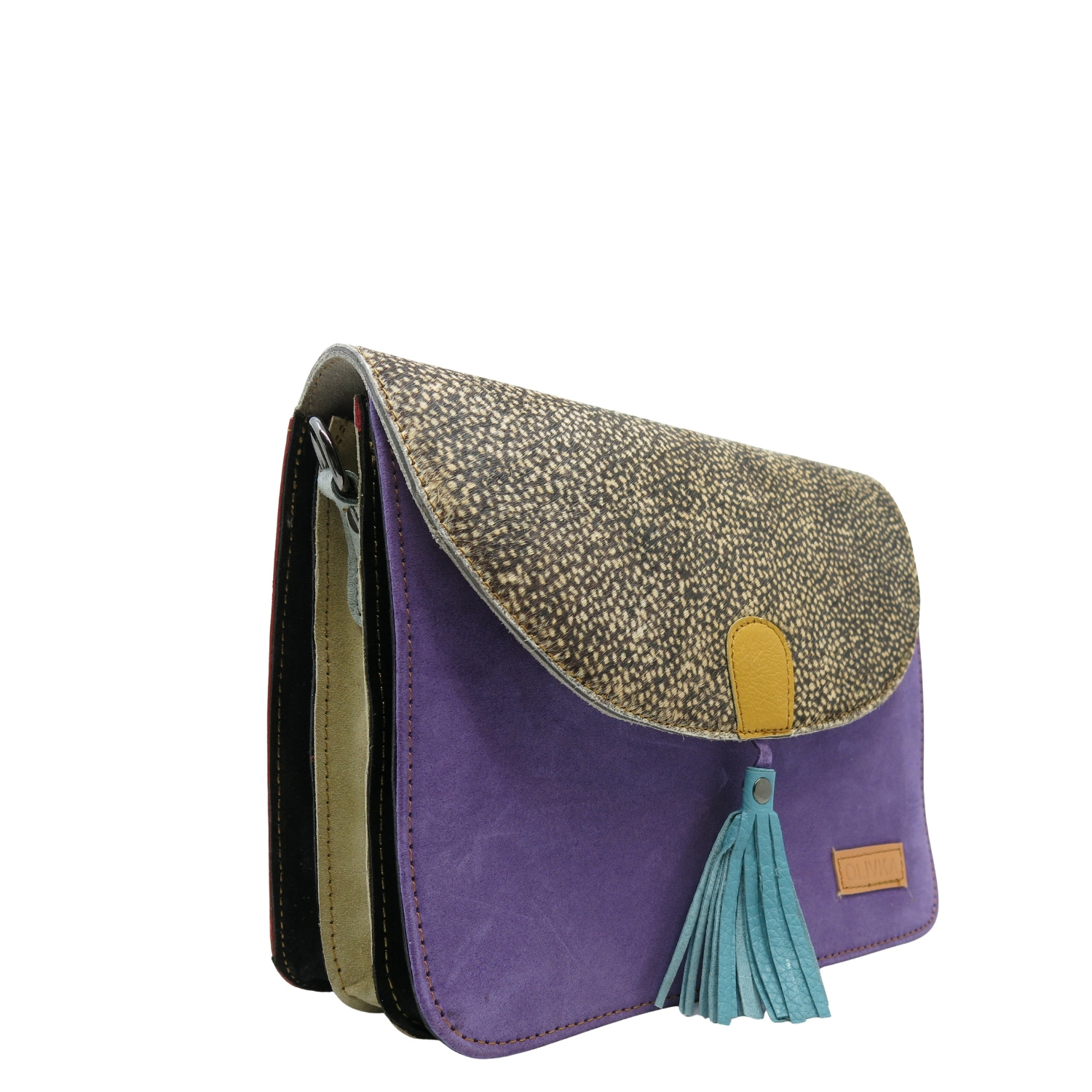 - tył torebki wykonany ze skrawków skóry naturalnej