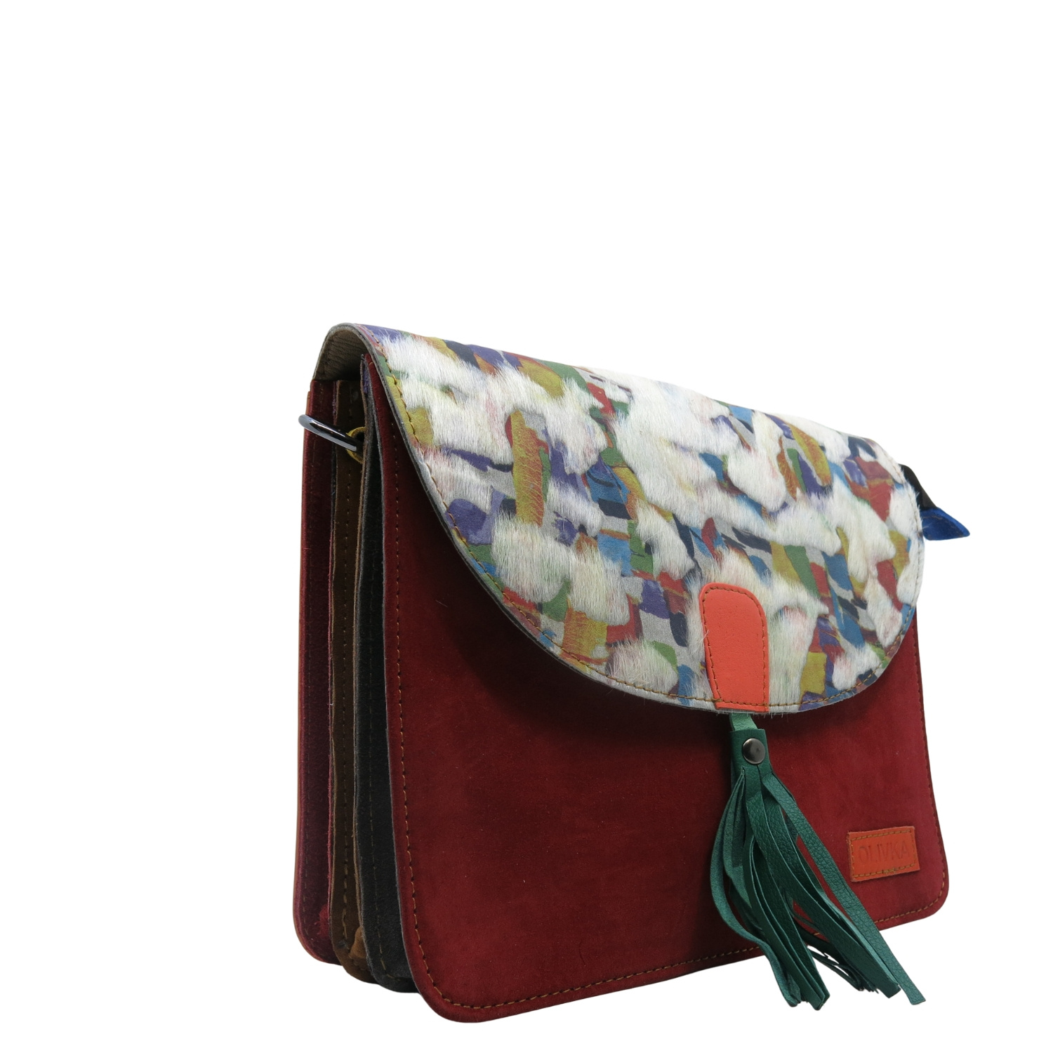 - tył torebki wykonany ze skrawków skóry naturalnej