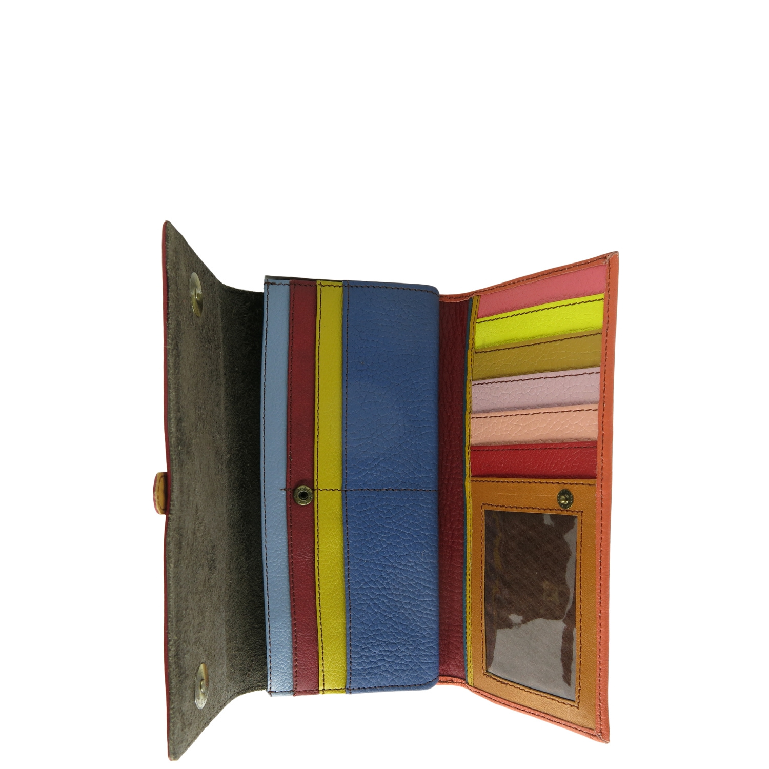 Średniej wielkości portfel wykonany ze skrawków skóry naturalnej. Jego unikalne połączenie kolorystyczne nadaje mu niepowtarzalny charakter, czyniąc go doskonałym dodatkiem. Spełni oczekiwania nawet najbardziej wymagających kobiet.