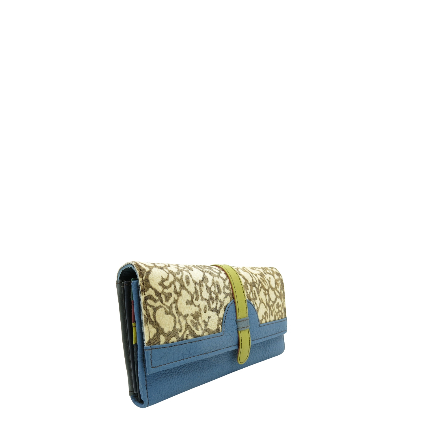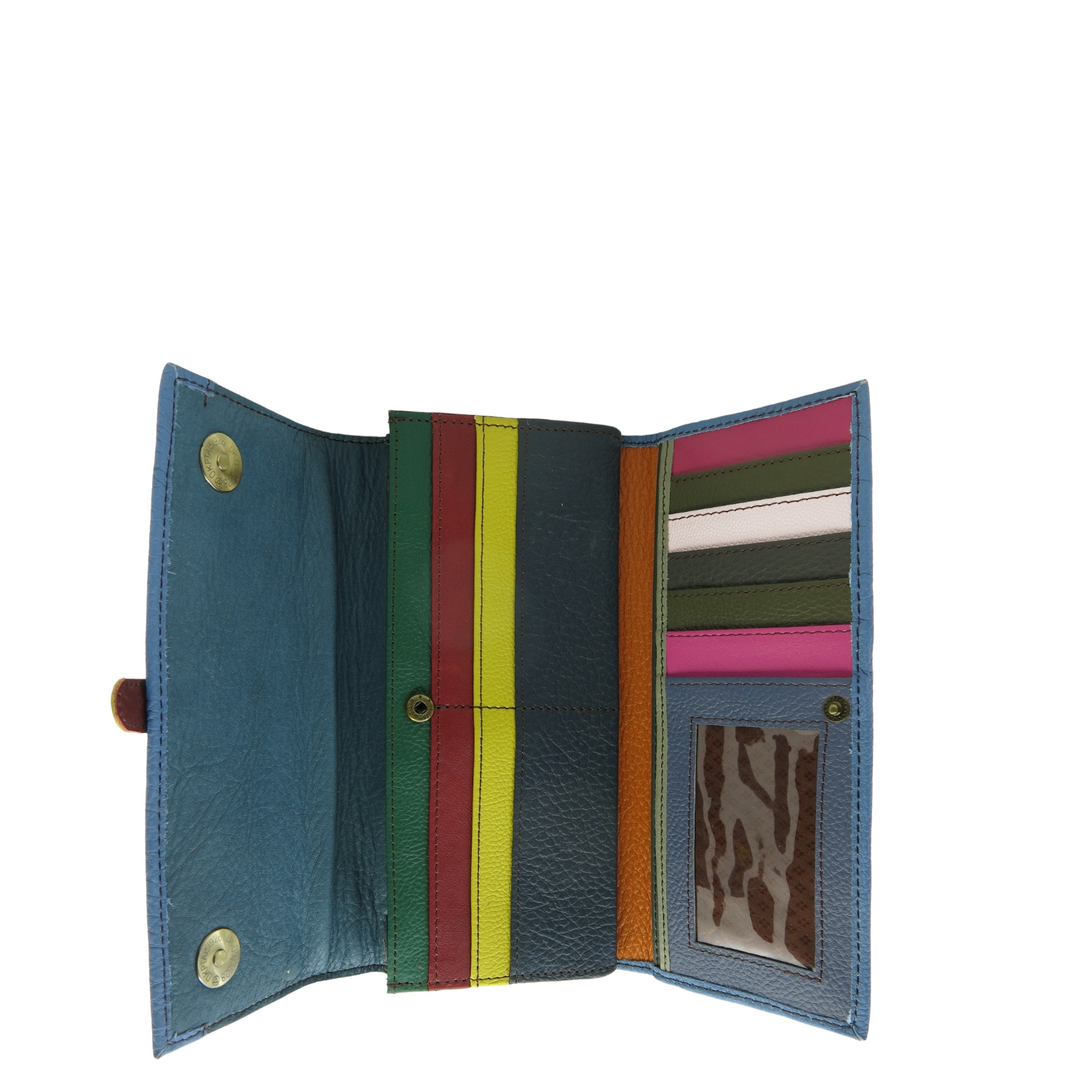 Średniej wielkości portfel wykonany ze skrawków skóry naturalnej. Jego unikalne połączenie kolorystyczne nadaje mu niepowtarzalny charakter, czyniąc go doskonałym dodatkiem. Spełni oczekiwania nawet najbardziej wymagających kobiet.