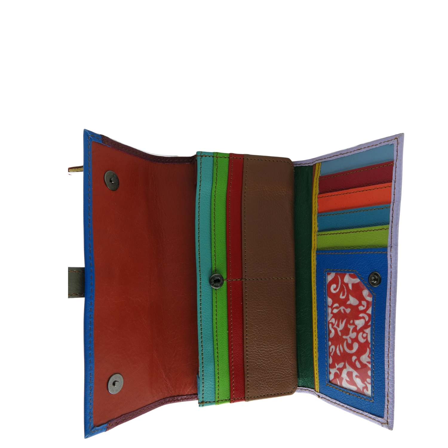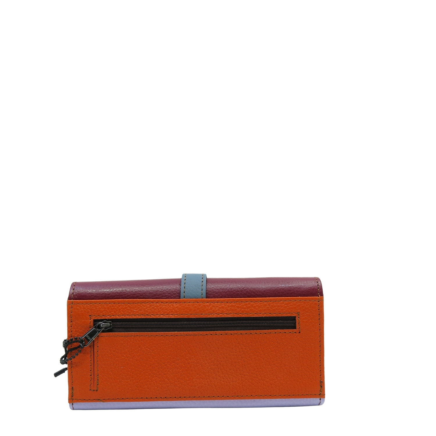 Średniej wielkości portfel wykonany ze skrawków skóry naturalnej. Jego unikalne połączenie kolorystyczne nadaje mu niepowtarzalny charakter, czyniąc go doskonałym dodatkiem. Spełni oczekiwania nawet najbardziej wymagających kobiet.