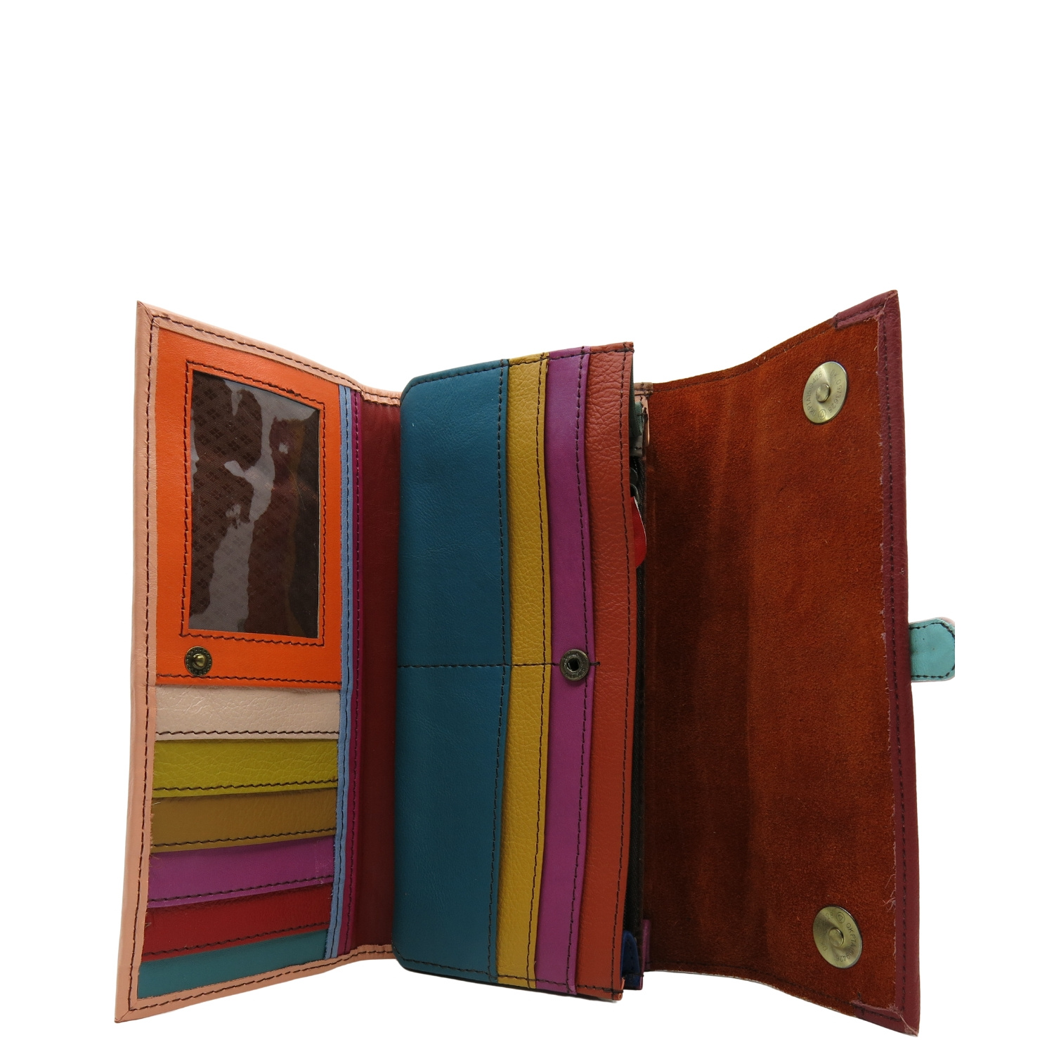 Średniej wielkości portfel wykonany ze skrawków skóry naturalnej. Jego unikalne połączenie kolorystyczne nadaje mu niepowtarzalny charakter, czyniąc go doskonałym dodatkiem. Spełni oczekiwania nawet najbardziej wymagających kobiet.