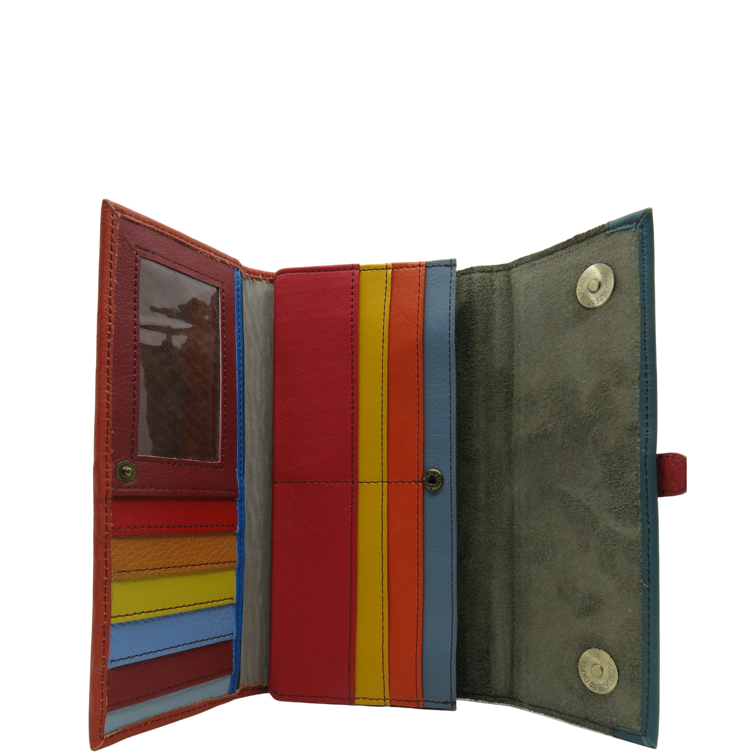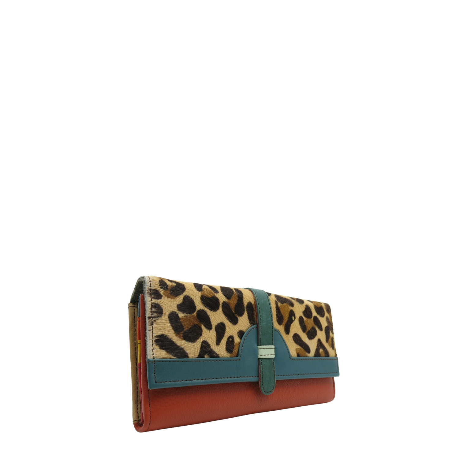 Średniej wielkości portfel wykonany ze skrawków skóry naturalnej. Jego unikalne połączenie kolorystyczne nadaje mu niepowtarzalny charakter, czyniąc go doskonałym dodatkiem. Spełni oczekiwania nawet najbardziej wymagających kobiet.