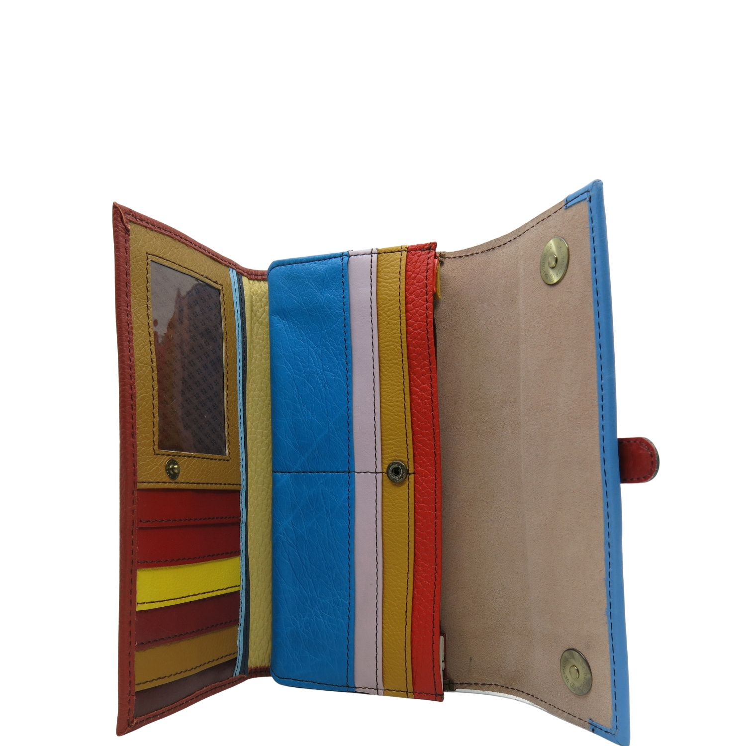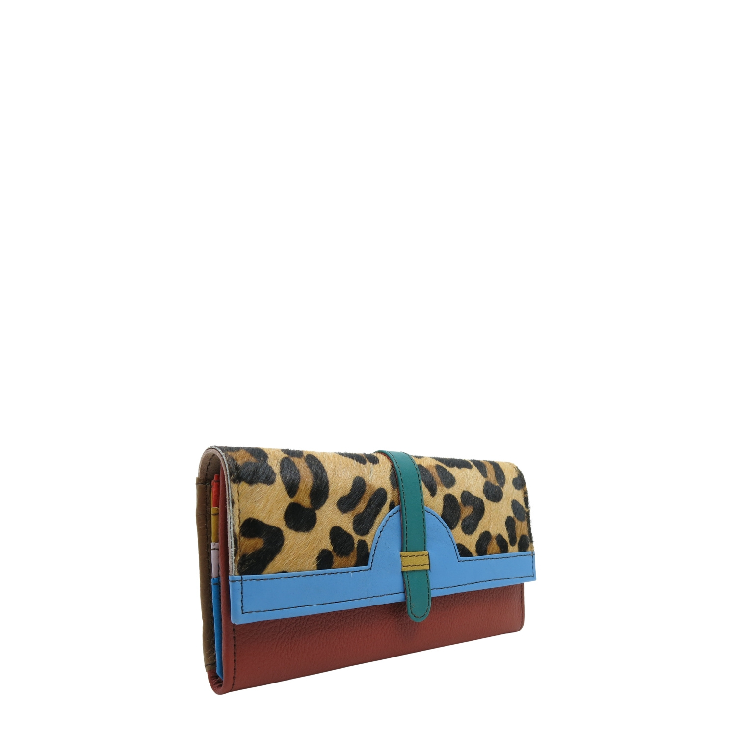 Średniej wielkości portfel wykonany ze skrawków skóry naturalnej. Jego unikalne połączenie kolorystyczne nadaje mu niepowtarzalny charakter, czyniąc go doskonałym dodatkiem. Spełni oczekiwania nawet najbardziej wymagających kobiet.