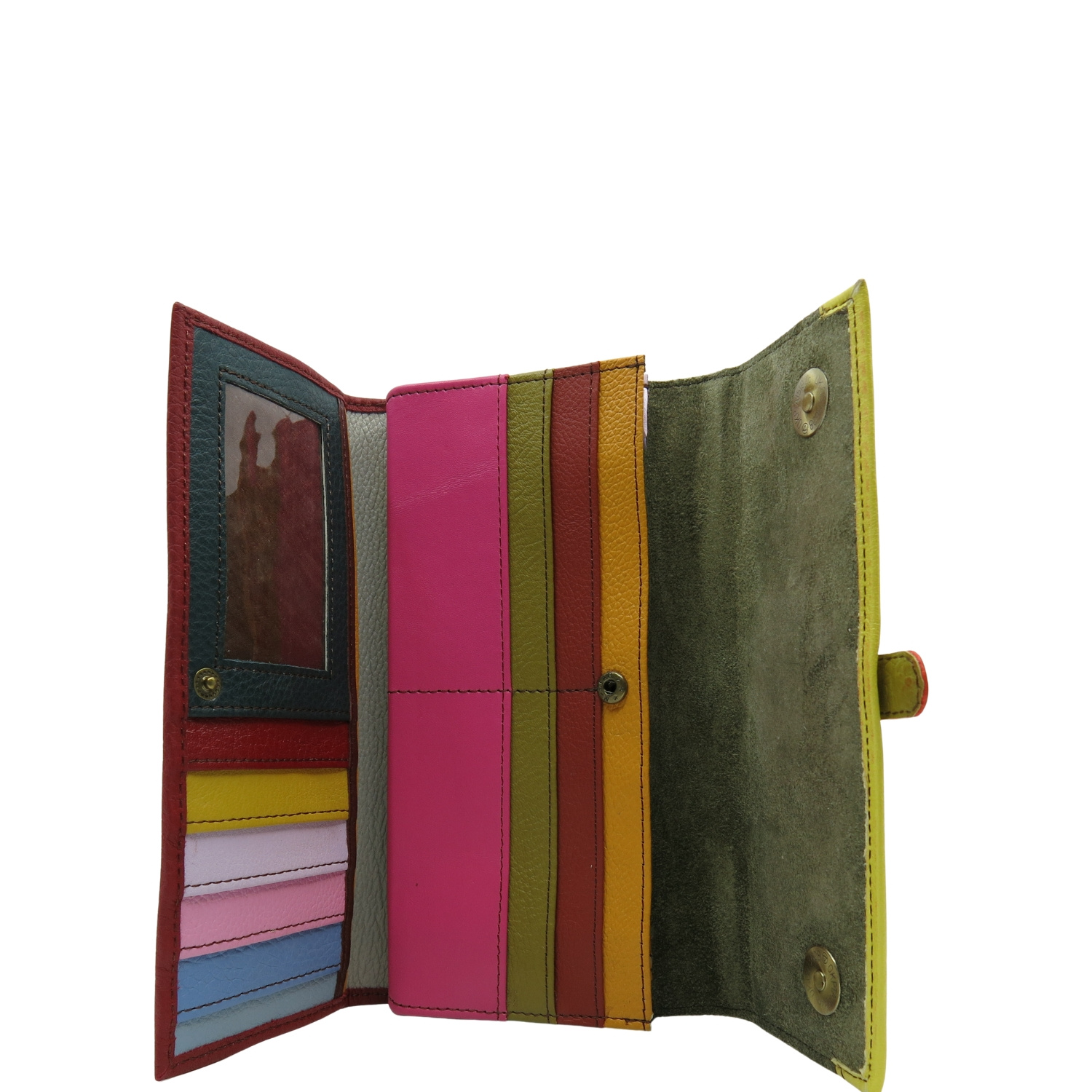 Średniej wielkości portfel wykonany ze skrawków skóry naturalnej. Jego unikalne połączenie kolorystyczne nadaje mu niepowtarzalny charakter, czyniąc go doskonałym dodatkiem. Spełni oczekiwania nawet najbardziej wymagających kobiet.