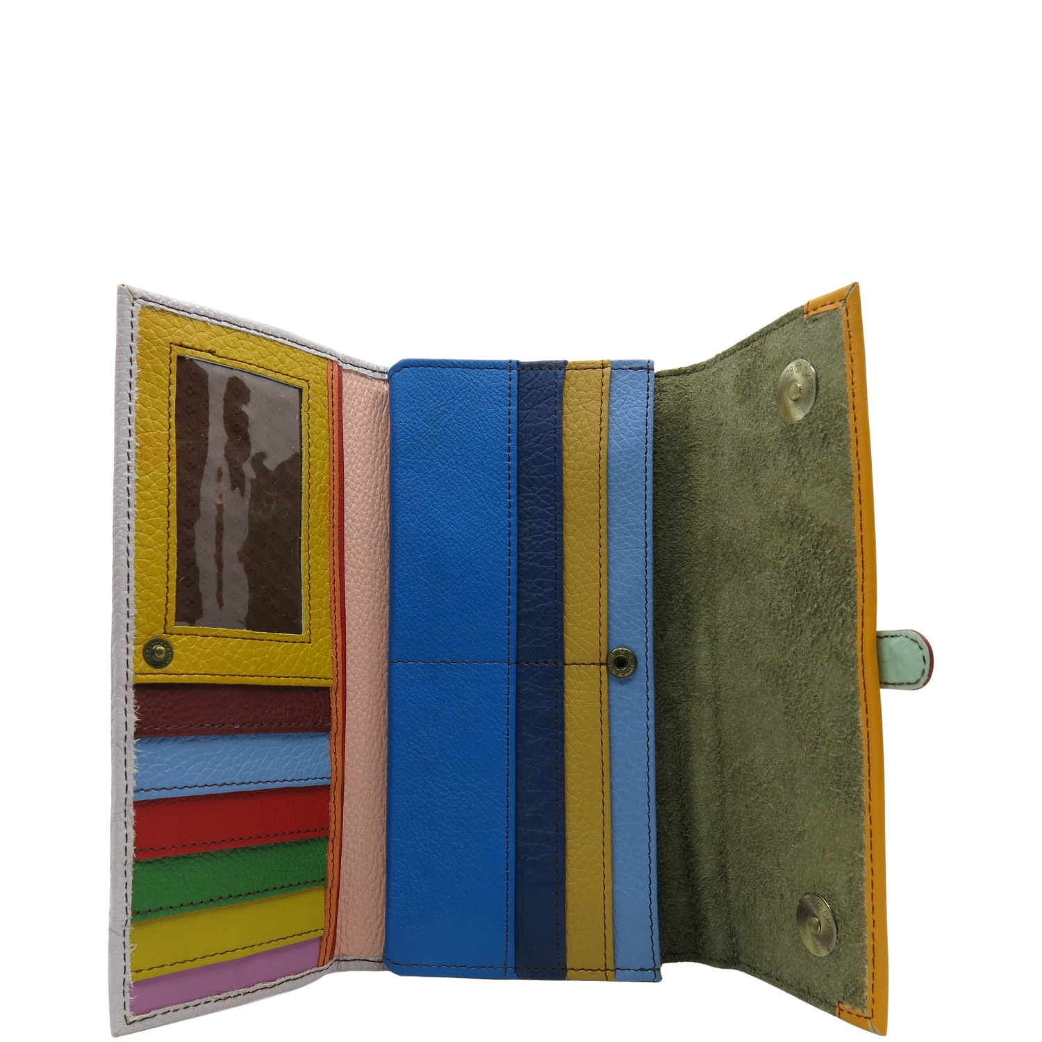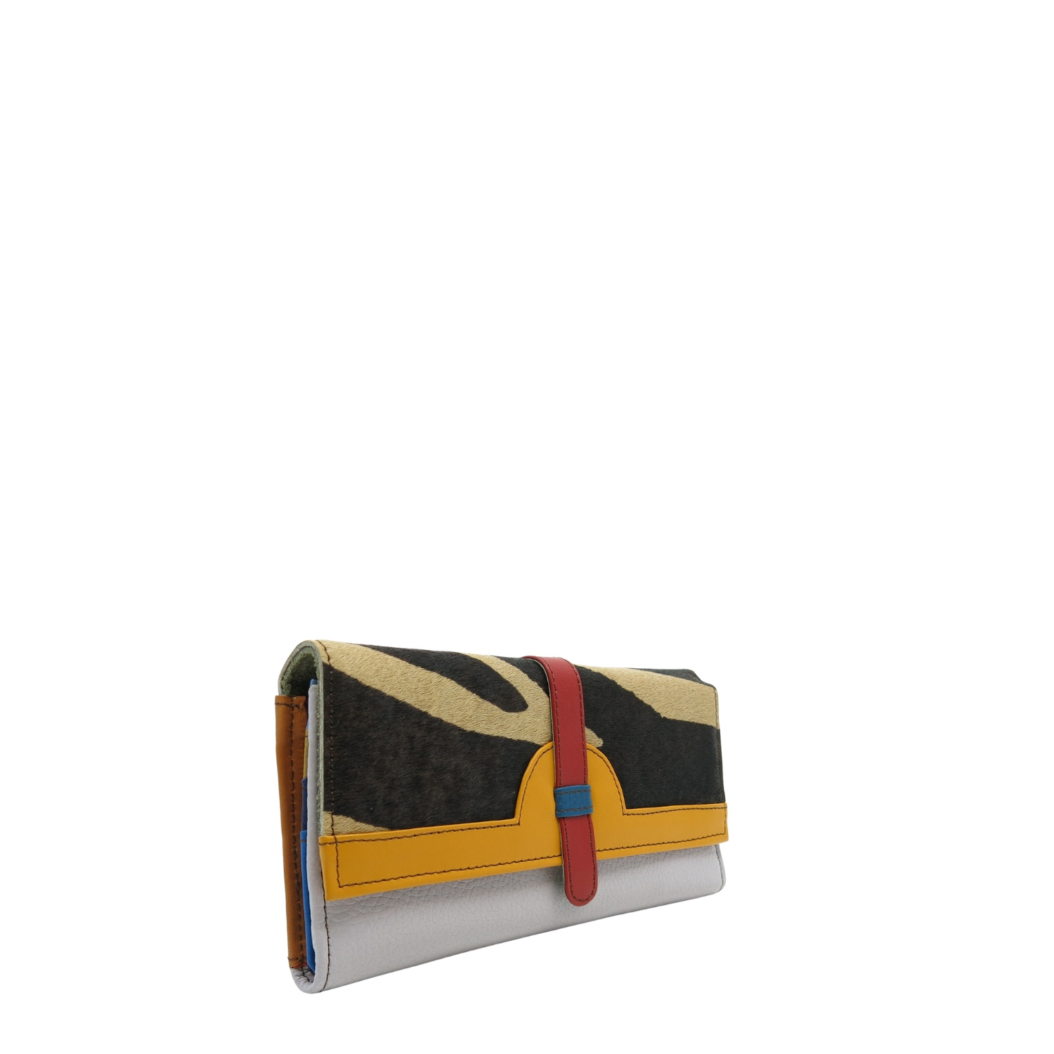 Średniej wielkości portfel wykonany ze skrawków skóry naturalnej. Jego unikalne połączenie kolorystyczne nadaje mu niepowtarzalny charakter, czyniąc go doskonałym dodatkiem. Spełni oczekiwania nawet najbardziej wymagających kobiet.