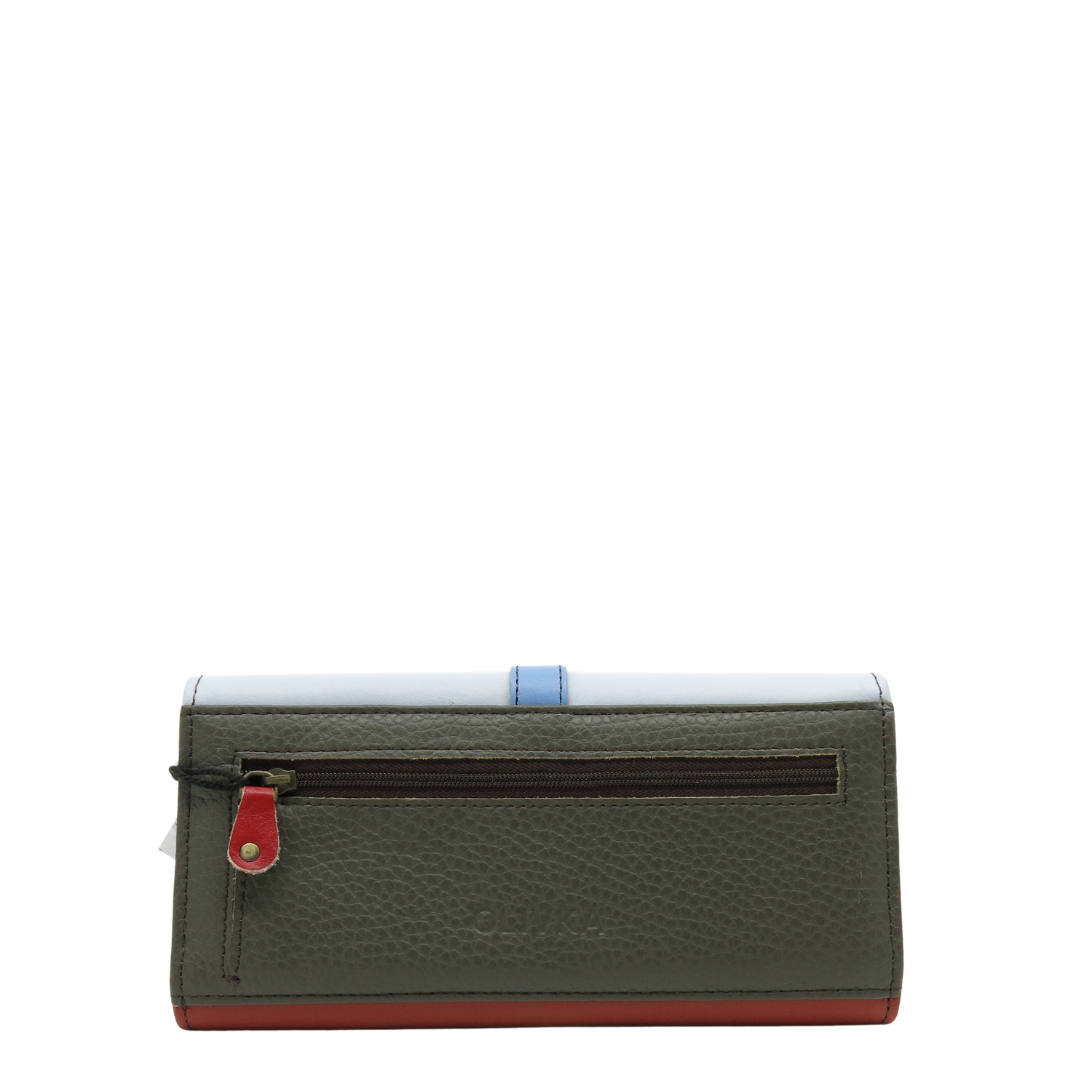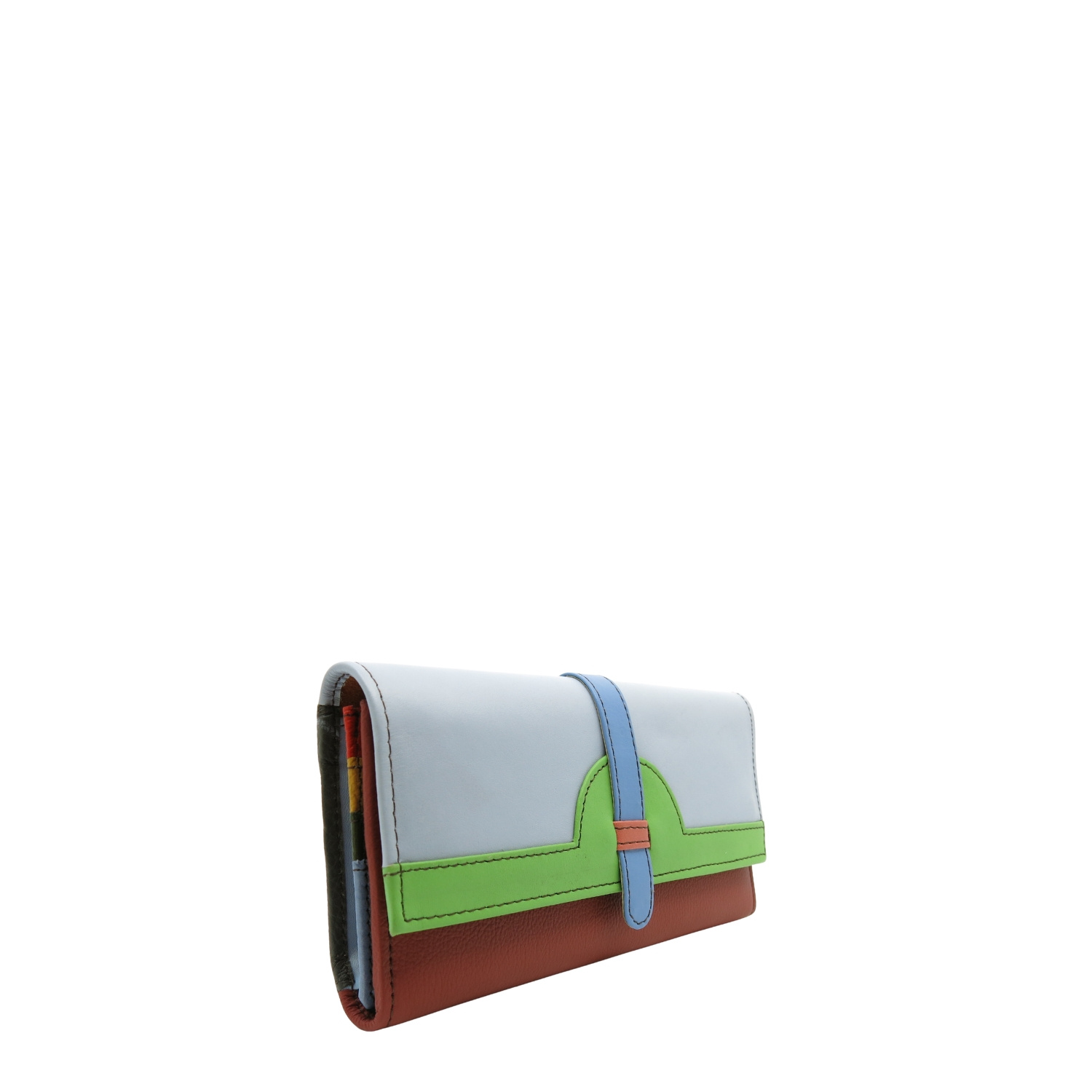 Średniej wielkości portfel wykonany ze skrawków skóry naturalnej. Jego unikalne połączenie kolorystyczne nadaje mu niepowtarzalny charakter, czyniąc go doskonałym dodatkiem. Spełni oczekiwania nawet najbardziej wymagających kobiet.